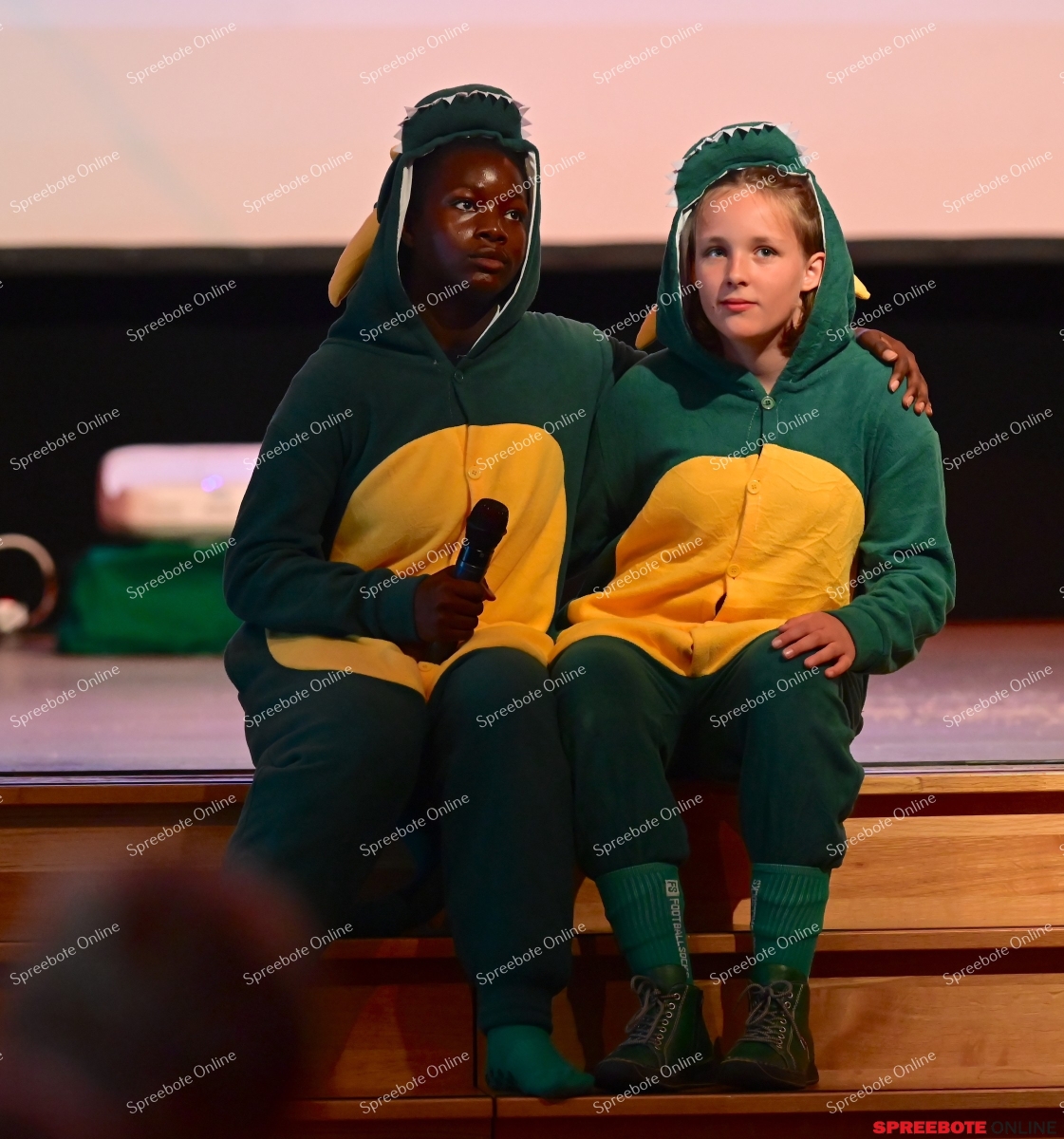 Ein ganzes Jahr lang haben die Chefinitiatorinnen Lisa Gräfe, Musiklehrerin, Nina Danuta Olczak, Lehrerin für Kunst und Theater, sowie Sportlehrerin Kerstin Schön gemeinsam mit 150 Kindern und Jugendlichen der Freien Grundschule Fürstenwalde des Rahn Education Campus am Spreebogen geprobt. Es sollte eine Überraschung werden, doch schnell sprach sich herum, dass hier etwas Großes entstand. Die Geschichte des kleinen grünen Drachen Tabaluga sollte aufgeführt werden. Die Faszination, ein Teil dieser Geschichte zu sein, ließ die Kinder nicht mehr los. Dafür nahmen sie die vielen Stunden des Trainings gern in Kauf. Dabei spielte das Konzept eine wesentliche Rolle, doch die engagierten Lehrerinnen hatten bereits einen klaren Plan. Kostümierung, Bühnenbild und Gesang standen im Vordergrund. Professionelle Unterstützung erhielten sie von der Crew von Ghostnote Sound – Tobias Neumeister kümmerte sich perfekt um Licht und Ton. Das verlieh dem Stück um den Drachen genau das Funkeln, das es brauchte. Zur Eröffnung sprach Philipp Schittek, Schul- und Campusleiter, seine große Bewunderung für das kleine Ensemble aus und bedauerte schon jetzt, dass dieses Stück ein echtes Unikat bleiben wird. Denn viele der jungen Künstler, die alle aus der Rahn-Familie stammen, werden bald ihre eigenen Lernwege weitergehen. Besonders herzlich bedankte er sich bei den Eltern für ihr unermüdliches Engagement, die ihre Kinder zu den Proben brachten und so dazu beitrugen, dass das Stück so wundervoll in Szene gesetzt werden konnte. Doreen Kulesa, Beratungslehrerin und Schulsozialarbeiterin, hatte zudem für das Stück ein Videoteam ins Leben gerufen. Zusammen mit zwei Kindern wurde das Stück auf Zelluloid gebannt – eine wertvolle Erinnerung für alle Beteiligten.