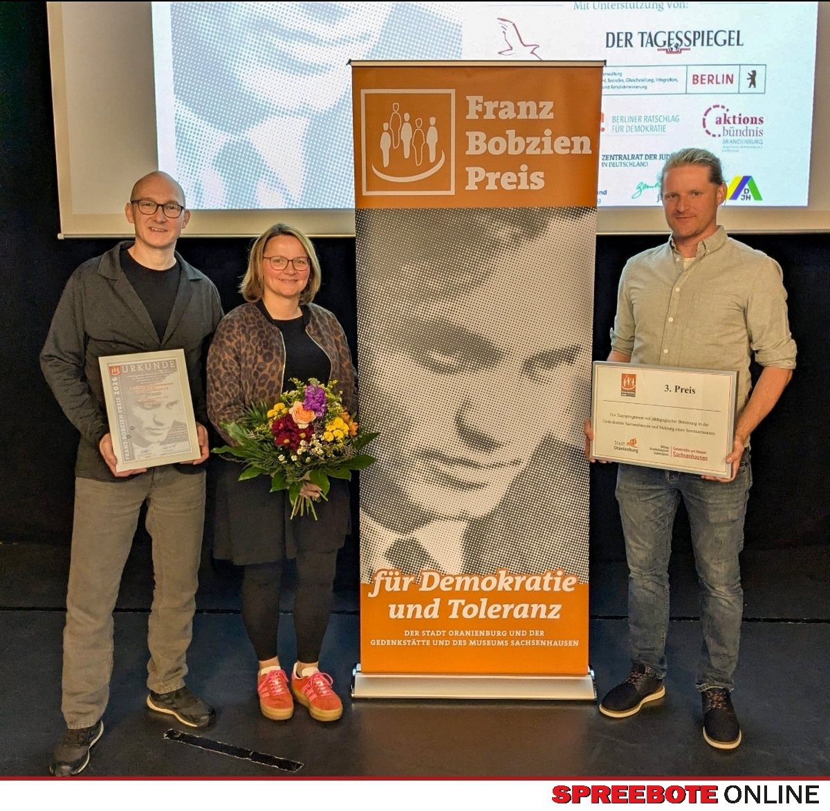 Anlässlich des 81. Jahrestages der Befreiung des Konzentrationslagers Sachsenhausen wurde Mitte April in Oranienburg der Franz-Bobzien-Preis verliehen. Die Stadt Oranienburg und die Gedenkstätte Sachsenhausen ehrten damit Projekte, die sich aktiv für Demokratie, Toleranz und eine kritische Auseinandersetzung mit der NS-Vergangenheit einsetzen. Die Preisverleihung fand in der Orangerie statt und versammelte zahlreiche Gäste aus Politik, Gesellschaft sowie Vertreter der nominierten Initiativen. Insgesamt gingen über 60 Bewerbungen aus Brandenburg und Berlin ein so viele wie noch nie zuvor. Erstmals in der Geschichte des Franz-Bobzien-Preises wurden zwei erste Plätze vergeben. Ausgezeichnet wurden das Projekt „Demokratie erfordert Engagement Tu was!“ unter der Leitung des care4democracy e.V. aus Falkensee sowie das Projekt „Spurensicherung“ des Arbeitskreises „Zwangsarbeit Gedenken“ aus Ludwigsfelde. Beide Initiativen überzeugten durch ihr besonderes Engagement für demokratische Werte und Erinnerungskultur. Der zweite Platz des Franz-Bobzien-Preises ging an das Projekt „Lieder aus Sachsenhausen I – #NieWiederIstJetzt“ des Chorverbands Berlin e.V. Ein Projektchor sammelte im Konzentrationslager Sachsenhausen entstandene Lieder, bearbeitete sie neu und führte sie auf. Ergänzend wurde eine Broschüre erstellt, die die Arrangements langfristig für Chöre und Bildungseinrichtungen zugänglich macht.