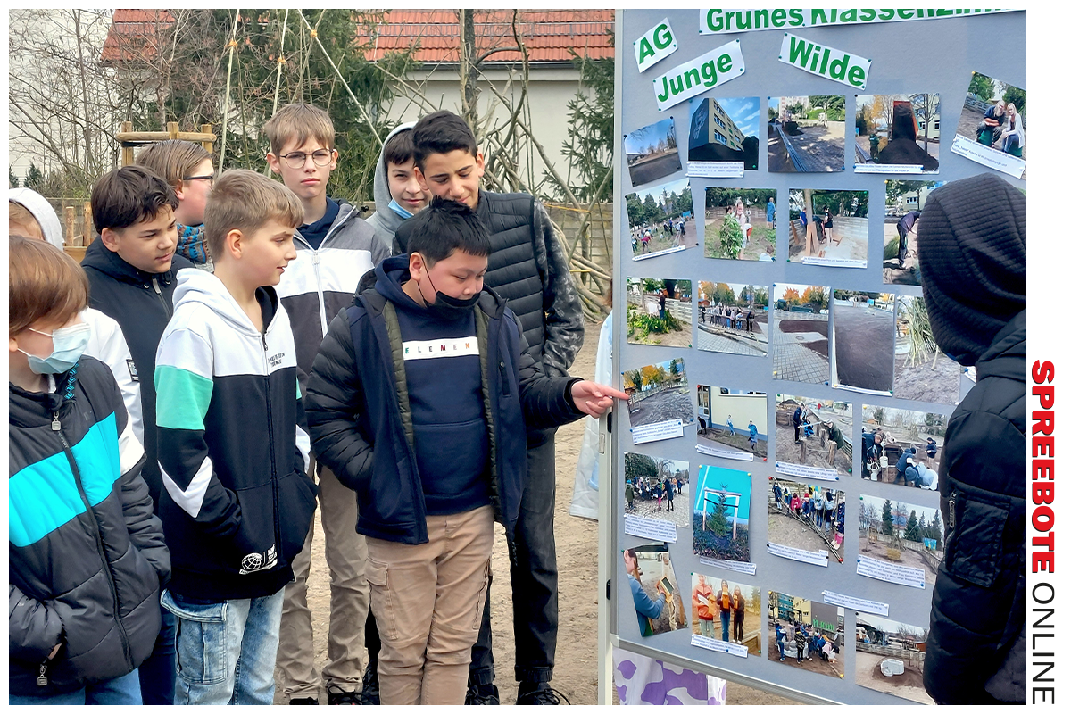 Gemeinsam mit der Deutschen Umwelthilfe und dessen Bundesgeschäftsführer Sascha Müller-Kraenner machte sich Umweltstaatssekretärin Anja Boudon vor Ort ein Bild über den Stand des Schulhofs und half bei den Pflanzaktionen der Schulgarten-AG „Junge Wilde“. An der Sigmund-Jähn-Grundschule in Fürstenwalde verwandeln 15 Schülerinnen und Schüler der Schulgarten-AG seit letztem Sommer eine Teilfläche ihres Schulhofes in ein grünes Klassenzimmer. Anja Boudon und Müller-Kraenner beteiligten sich zusammen mit dem Fürstenwalder Bürgermeister Matthias Rudolph und der Bildungsdezernentin Sandra Deska an der großen Pflanzaktion, bei der mehr als 100 Sträucher gepflanzt, Insektenhotels aufgebaut, die Hochbeete bepflanzt und die Kräuterspirale mit Muttererde befüllt wurden. Zwei kleine Bäume wurden außerdem ineinandergeflochten, die ab sofort das Eingangsportal in die Ruhe-Oase bilden. Zuvor haben die „Jungen Wilden“ bereits die Hochbeete gebaut, Splitt gegen Muttererde getauscht, ein Weidentipi angelegt, drei Obstbäume und einen Weihnachtsbaum gepflanzt und einen Pflanzgraben für eine Hecke ausgehoben. Im Herbst haben die Kinder 800 Blumenzwiebeln auf dem Schulhof versteckt und im Winter in der Werkstatt Vogelnistkästen gebaut. Im April gehen die Arbeiten weiter: Beerensträucher werden gepflanzt, Gemüsebeete angelegt, die Kräuterspirale wird bepflanzt, eine Rasenfläche zum Sonne tanken und ein Wildblumenbeet werden angelegt.
