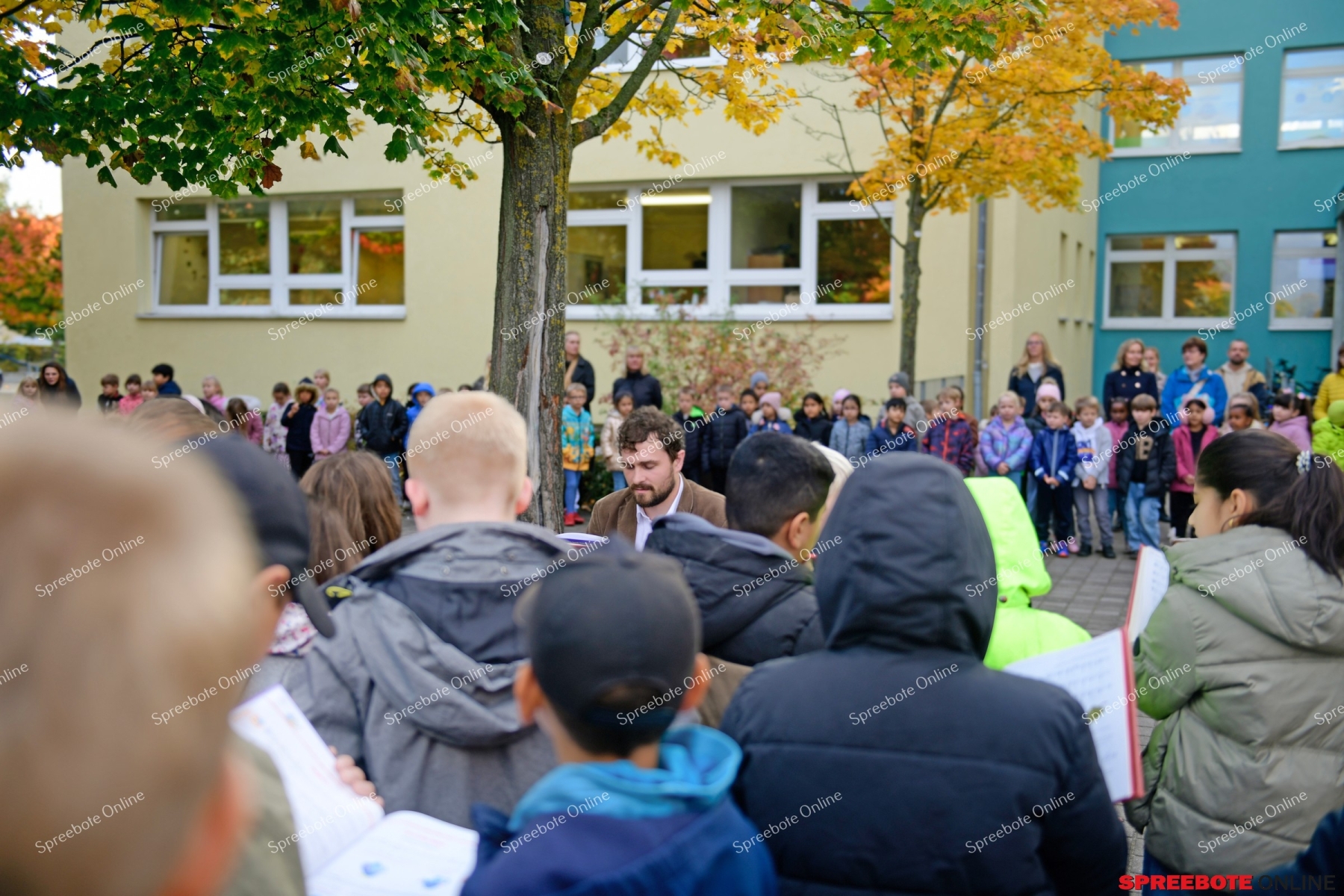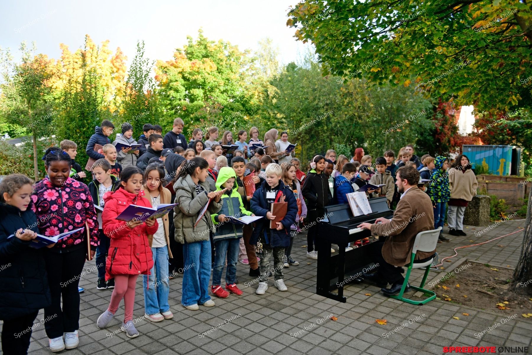 Musiklehrer Marvin Weigert hatte mit dem Kinderchor drei Lieder eingeübt: „Wenn die wilden Winde stürmen“, „Im Alten Schloss ist Geisterstund“ und als Kontrastprogramm „Heute Spaghetti, morgen Spaghetti“. Das sorgte nicht nur für Schmunzeln bei den Erwachsenen, sondern auch für sichtbare Freude bei den Kindern. Die Stimmung war gelöst, aber aufmerksam.