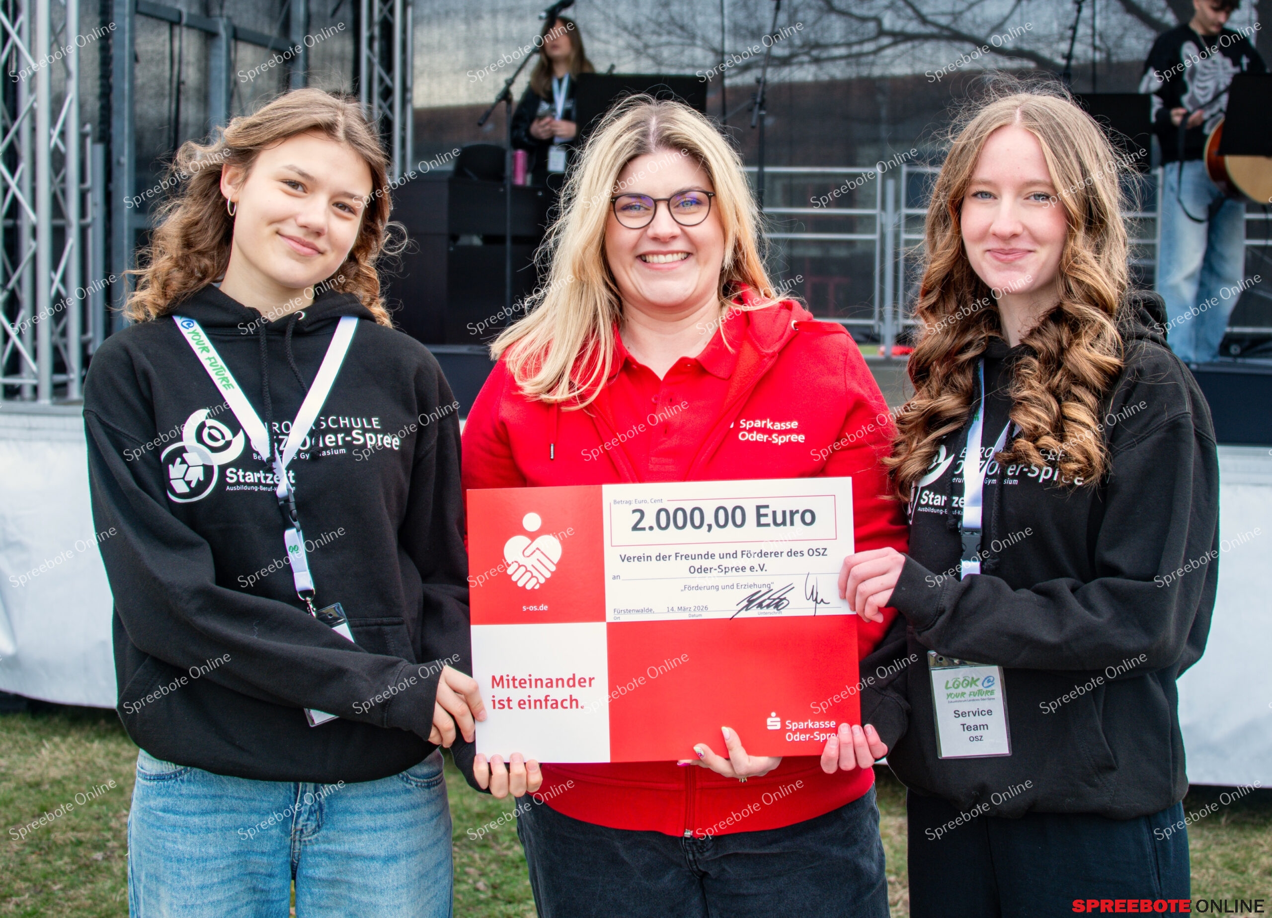 Gleich im Anschluss überreichte die Sparkasse Oder-Spree feierlich einen Scheck. Im Rahmen der Veranstaltung durfte sich der Förderverein der Schule über diese besondere Unterstützung freuen. Mit dieser Geste wurde zugleich das große Engagement der Beteiligten an diesem Tag gewürdigt und auf herzliche Weise unterstützt.