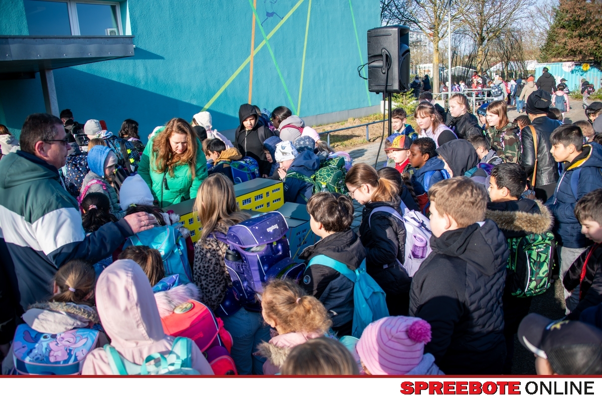 7:45 Uhr, großes Zusammentreffen auf dem Schulhof der Sigmund-Jähn-Grundschule in Fürstenwalde. Alle Kinder und Lehrer bildeten im Karree die Klassen ab. Was es eigentlich so richtig geben sollte, erschloss sich erst im Laufe des Ablaufes. Schulleiterin Ines Tesch wollte alle nicht nur noch einmal sehen, sondern hatte vieles Wissenswerte für die Kinder parat. Ein herzliches „Guten Morgen, Frau Tesch“ schallte über den Schulhof, und schon ging es los.