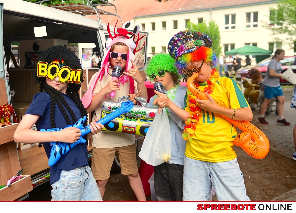 Rund um das Fest gab es zahlreiche liebevoll gestaltete Stände, die zum Basteln, Bemalen und kreativen Ausprobieren einluden. Auch die Freiwillige Feuerwehr Hangelsberg war mit dabei und brachte sich engagiert ein. Sie hatten die Schläuche ausgerollt – und für die Kinder war es ein Riesenspaß, die Büchsen mit dem Wasserstrahl vom Tisch zu fegen! Und natürlich durfte auch das ausgelassene Toben nicht fehlen – ob auf dem Spielplatz oder auf der zauberhaften Wackelburg: Die Kinder waren rundum glücklich.