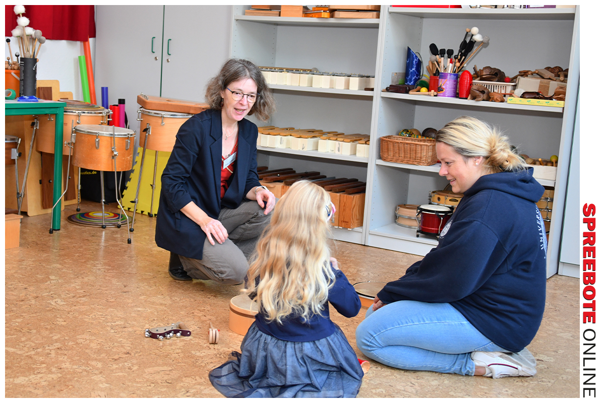 Am Vorabend fand noch eine große Vernissage mit den Neuinterpretationen des Musiklebens der Schule statt und gleich am nächsten Tag gab es einen großen Ansturm auf den „Schnuppertag“ in der Musikschule Fürstenwalde. Als hätten sich alle verabredet, kamen die Interessierten pünktlich zur Eröffnung des Schnuppertages. Zwei Stunden schienen dabei etwas zu kurz zu sein, aber der Vorteil lag erfahrungsgemäß klar auf der Hand. Es sind nur Familien mit Kindern gekommen, die der Musik sehr viel Interesse entgegenbringen und die sich mit der künstlerischen Arbeit mit und für die Musik identifizieren. Mit 16 Räumen, die das gesamte Repertoire der Musikschule Fürstenwalde widerspiegeln, war man angetreten, die Gäste für sich zu gewinnen, zum Beispiel, um hier nur einige zu nennen: E-Gitarre, Block-& Querflöte, Saxophon, Gesang, Klavier, Violine und vieles mehr gab es zu erleben. Besonders das Musikzimmer der musikalischen Früherziehung war erster Anlaufpunkt an diesem Tag. Für die Kinder war das auch eine Möglichkeit, sich der Musik und ihren verschiedenen Klängen zu widmen. Die Leiterin der Musikschule in Fürstenwalde, Susanne Scharf, berichtete von der Premiere des Instrumenten-Karussells in diesem Schuljahr: Alle drei Wochen kann der Musikschüler ein anderes Musikinstrument erkunden und erlernen. Die Aktion ist geplant für einen Zeitraum von einem halben Jahr und altersmäßig ist das Karussell für 6- bis 8-Jährige gedacht, wobei Ausnahmen möglich sind, weil es sich schon oftmals gezeigt hat, dass es für manche Kinder schwer ist, die einstige Entscheidung rückgängig zu machen. Das soll nun helfen, sich zu begeistern und den richtigen Weg zu finden.