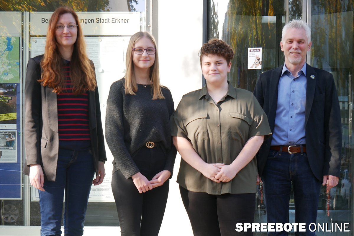 Im September hat die Lehrzeit für Emilie Feldt und Hermine Prediger im Rathaus Erkner zur Verwaltungsfachangestellten begonnen. Die Auszubildenden werden den praktischen Teil ihrer Ausbildung in allen Bereichen der Verwaltung durchlaufen. Die Theorie für die Ausbildung zur Verwaltungsfachangestellten erhalten die beiden Auszubildenden in Cottbus. Seit ihrem Start im Rathaus Erkner haben die beiden jungen Frauen aus Grünheide bereits Verwaltungsluft geschnuppert, einen kleinen Einblick in ihre zukünftige Arbeit erhalten und erste Aufgaben erledigen müssen. Dazu zählte u.a. eine Power-Point-Präsentation zur Historie, den Sehenswürdigkeiten und das Leben über Erkner zu erstellen, um sich darüber Wissen über ihren Arbeitsort anzueignen. Katrin Rusch, Geschäftsbereichsleiterin des Ressorts Hauptverwaltung, Bürgerservice und Tourismus und zugleich Personalleiterin, sowie Bürgermeister Henryk Pilz sind zuversichtlich, dass die beiden Auszubildenden ihre dreijährige Lehrzeit souverän im Rathaus Erkner meistern werden.