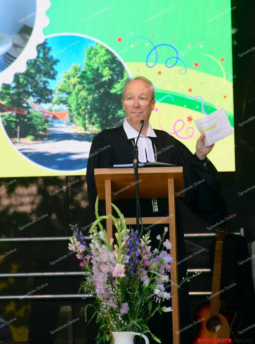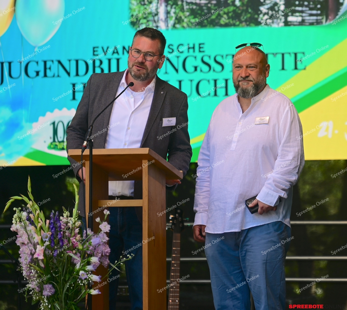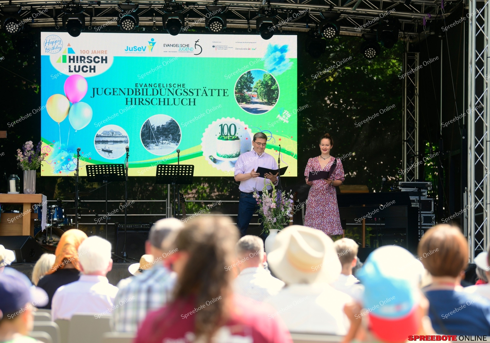 Christoph Ritter, Vorstand von Jusev, eröffnete die Feierlichkeiten und begrüßte Gäste, Weggefährten, Freunde und Mitstreiter mit einfühlsamen Worten zum 100-jährigen Bestehen der Evangelischen Jugendbildungsstätte Hirschluch. In seiner Ansprache würdigte er die tiefe geistliche und gesellschaftliche Bedeutung dieses besonderen Ortes im Wandel der Zeiten. Im Anschluss hielt Landesbischof Christian Stäblein die Predigt – eine besinnliche und zugleich kraftvolle Botschaft, die die Herzen der Anwesenden bewegte. Musikalisch wurde der Festakt begleitet vom Jugend-Posaunenchor Oderland, der mit festlichen Klängen dem Anlass eine würdevolle Atmosphäre verlieh. Dem festlichen Charakter entsprechend gab es anschließend Mitmachaktionen mit der United-Band, gemeinsam mit der Evangelischen Jugend Oderland-Spree. Im Zusammenspiel mit den Gästen entstand ein lebendiges, fröhliches Miteinander – ein zauberhafter Ausdruck gelebter Gemeinschaft im Geist des Evangeliums.