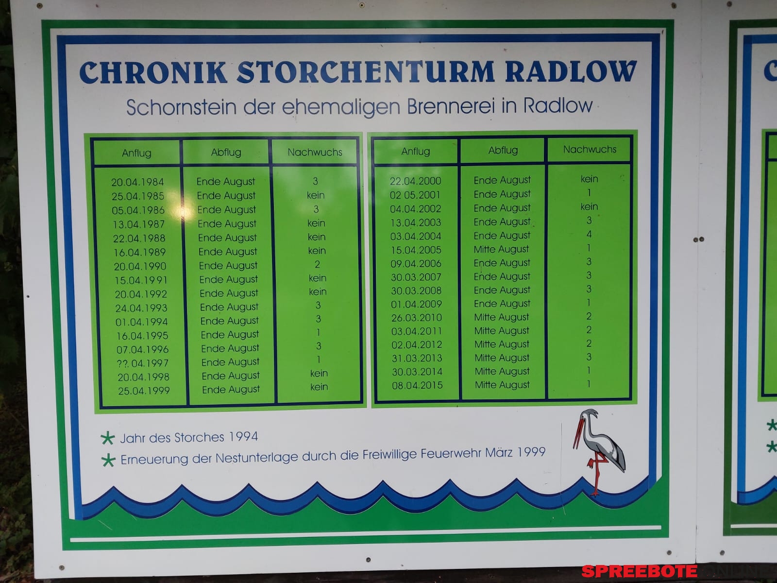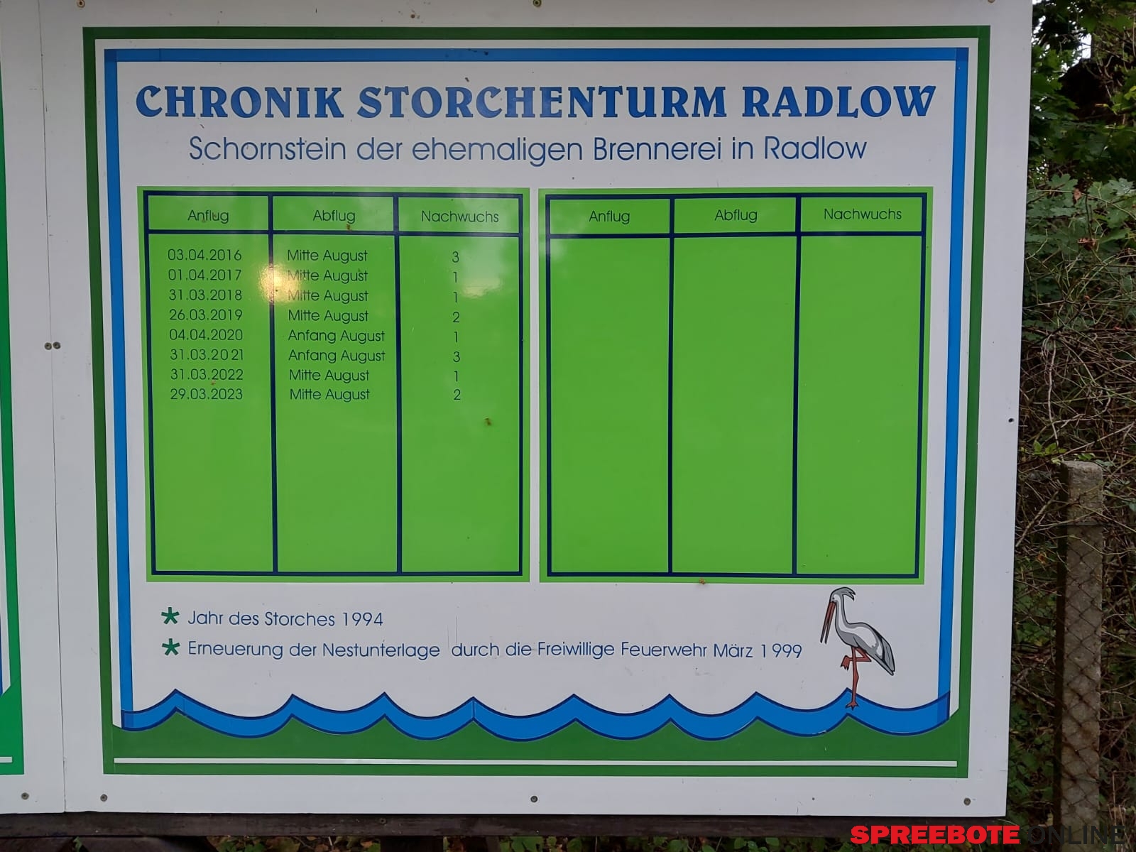 In der Ortschronik findet sich dazu folgende Passage: Eine kleine ornithologische Besonderheit ist es leider schon, was früher so selbstverständlich für Dörfer unserer Region war. Auf dem sehr alten übriggebliebenen Schornstein der ehemaligen Brennerei ( Abriss im März 1995 ) des Gutes befindet sich ein Storchennest, das einzige am Scharmützelsee ! Aufmerksame Einwohner von Radlow registrieren alljährlich Anflug, Nachwuchs und Abflug in einer „Storchenchronik“, die für jeden sichtbar vor dem Schornstein auf einer Tafel angebracht ist.“
