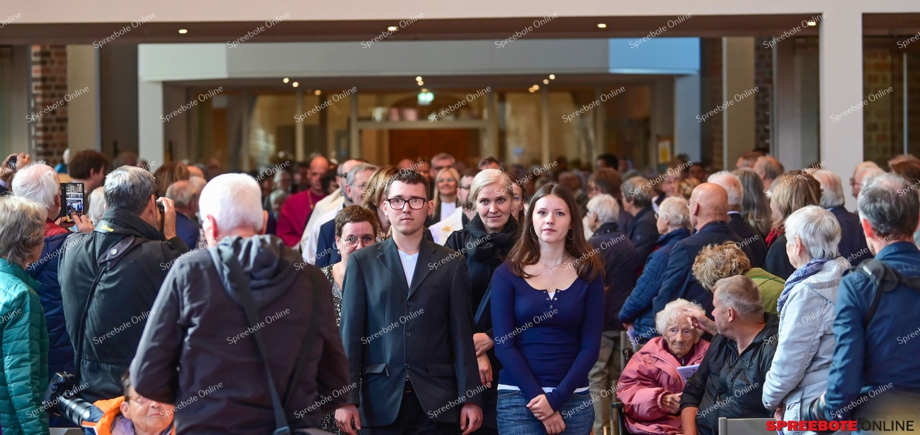 Ebenfalls unter den geladenen Gästen waren die Bischöfe, die in großer Verbundenheit und mit ehrenvollem Gruß zum ökumenischen Festgottesdienst eingeladen worden waren. Erzbischof Dr. Heiner Koch von der katholischen Kirche, Bischof Dr. Christian Stäblein von der Evangelischen Kirche Berlin-Brandenburg-schlesische Oberlausitz, Bischof Tadeusz Lityński von der katholischen Kirche aus Zielona Góra sowie Bischof Waldemar Pytel von der evangelischen Kirche aus Wrocław. Gemeinsam mit Superintendent Frank Schürer-Behrmann, Pfarrerin Rahel Rietzl, Anna-Franziska Pich, Cornelia Behrmann, Pfarrer Kevin Jessa sowie Pater Theodor Wenzel von der Katholischen Pfarrgemeinde Maria-Magdalena Oderland-Spree und weiteren Vertretern aus Kirche und Gesellschaft trafen sie nach dem Gottesdienst auf die Gläubigen bei Kaffee und Kuchen in der offenen Atmosphäre des Doms. Dort wurde nicht nur gefeiert, sondern auch zugehört, erinnert, gelacht und vor allem, Gemeinschaft erlebt, so wie es dem Geist dieses besonderen Jubiläums entspricht und nahmen sich im Anschluss an den Gottesdienst Zeit für das gemeinsame Gespräch an der Kaffeetafel.