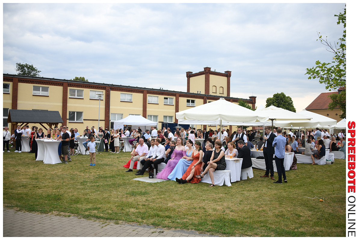 Der Open-Air-Abiturientenball auf der Anhöhe von Fürstenwalde im Oberstufenzentrum Oder-Spree Palmnicken war einer der schönsten Abi-Bälle seit langem. Das Innenhof-Areal, was durchaus riesig wirkt, ist geradezu prädestiniert für diesen schönen Anlass. Nun schon zum zweiten Mal fand der Abiturientenball draußen unter freiem Himmel statt. Und auch, wenn es dabei immer ein kleines Fünkchen Risiko gibt, dass es vielleicht doch regnen könnte, ist der Erfolg, wenn alles glatt geht, umso größer. Hierfür hatten sich die Schüler des Oberstufenzentrums um ihren Lehrer Torsten Fischer gescharrt und einen Abiball ins Leben gerufen, der noch lange nachhallen wird. Das professionelle Know-how haben sie sich bei einem bewährten Partner aus der Region, der Event & Cateringservice Ansgar Bank, geholt, der die Ideen zusammenfasste und in die Tat umsetzte. Im klassischen Stil in Weiß & Silber, also standesgemäß, verwandelten sie das Areal in eine lauschige Party-Location – Zelte mit darunter befindlichen Sitzgelegenheiten oder dann doch lieber im Freien. Später zum Relaxen kam die Cavea super zur Geltung. Im Oberstufenzentrum gab es ab dem frühen Nachmittag die Zeugnisse. Von 109 Abiturienten, die zur Prüfung zugelassen wurden, haben 89 bestanden. Darunter auch Luca Ganswindt, er sticht als Bester seines Jahrganges mit 1,0 heraus und war an dem Abend sehr stolz – zu Recht. Er erzählte von seinem Schulwechsel vom Bernhardinum zum Oberstufenzentrum, um wie sein Bruder, der hier ebenfalls die Schulbank drückte, mit Bravour abzuschließen. Wir kennen Luca als begeisterten Fußballer bei der U19 der BSG Pneumant. Und das Sportliche wird er so schnell nicht aus den Augen verlieren, zumal er in der kommenden Saison wechseln wird, in die gerade aufgestiegene Männermannschaft in die Landesklasse Ost. Das alles unter einen Hut zu bekommen, wird eine Herausforderung werden, denn er wird Medizin studieren. Das Medizinstudium, so sind seine Ambitionen, möchte er gern in Berlin an der Charité absolvieren. Mit dem super Zeugnis und dem noch zu absolvierenden Medizintest, rechnet er sich ganz gute Chancen aus, dass er genommen wird. Wir drücken ihm die Daumen! Sollte dieses in Erfüllung gehen, könnte er sich gut die Unfallchirurgie als späteres Fachgebiet vorstellen. Die Unterstützung seiner Familie ist ihm sicher, beide Eltern sind Ärzte und in der Region gefragt. Es gab noch eine kleine Rede von Clara, die das Jahr noch einmal Revue passieren ließ und sich für die gymnasialen Jahre bedankte. Indes wurde der Plan, den offiziellen Teil am Anfang zu belassen, umgeworfen. Das Highlight an diesem tollen Abend waren natürlich die kühlen Getränke, aber in jedem Falle der Burger, den sich jeder selbst nach eigenem Gutdünken zusammenstellen konnten – die Schlange an der Burgerstation nahm kein Ende. Mit Salaten und raffinierten Desserts sowie anderen Köstlichkeiten hatten die Gäste die Qual der Wahl. Der Tanz kam natürlich nicht zu kurz und last but not least bekam Studiendirektorin Sabine Brösicke von den Schülern für ihr Engagement ein großes Dankeschön.