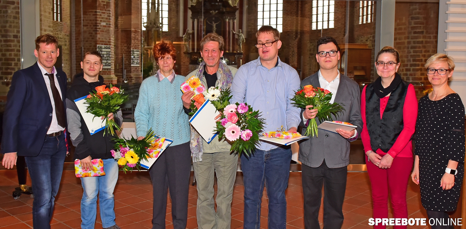 Die Christophorus-Werkstätten der Fürstenwalder Samariteranstalten haben heute im Fürstenwalder Dom feierlich die Abschluss-Zertifikate überreicht. Sechs Beschäftigte haben bestanden und fünf von ihnen bekamen die Zertifikate übergeben. Und als besonderen Höhepunkt gab es noch eine Premiere: Der Werkstattleiter der Christophorus-Werkstätten, Frank Michael Würdisch begleitete am Flügel hochkonzentriert den Chor der Korczak Schule, der mit dem Lied „Danke für diesen guten Morgen“ für einen würdigen musikalischen Background sorgte. Der zukünftige Theologische Vorstand der Samariteranstalten, Pfarrerin Ulrike Menzel, bedankte sich bei allen, die daran mitgewirkt hatten, diesen Tag zu gestalten, die geholfen hatten bei der Ausbildung der Absolventen und natürlich bei der Domgemeinde, die die Räumlichkeit zur Verfügung gestellt hat. Voll des Lobes war sie über das Engagement der Absolventen, die nun ihre Zertifizierung erhalten und somit in die Arbeitswelt der Christophorus-Werkstätten integriert sind. Frank Michael Würdisch ist ebenfalls erfreut, dass die Absolventen sich sehr darum bemüht haben, sich weiterzuentwickeln und für sich etwas zu bewirken, das brächte ihnen in der Gemeinschaft der Werkstätten eine Menge Sympathiepunkte ein. Weitere Mitarbeiter würden dies zum Anlass nehmen, sich ebenfalls zu qualifizieren. Carmen Lauterbach, Vorsitzende des Fördervereins, und Ramona Kund, Mitglied des Werkstattrates, überbrachten ebenfalls herzliche Worte, gerichtet an die Absolventen. Im weiteren Verlauf sorgte der Chor der Korczak Schule mit seinem musikalischen Repertoire für tolle Stimmung. Weiter so!