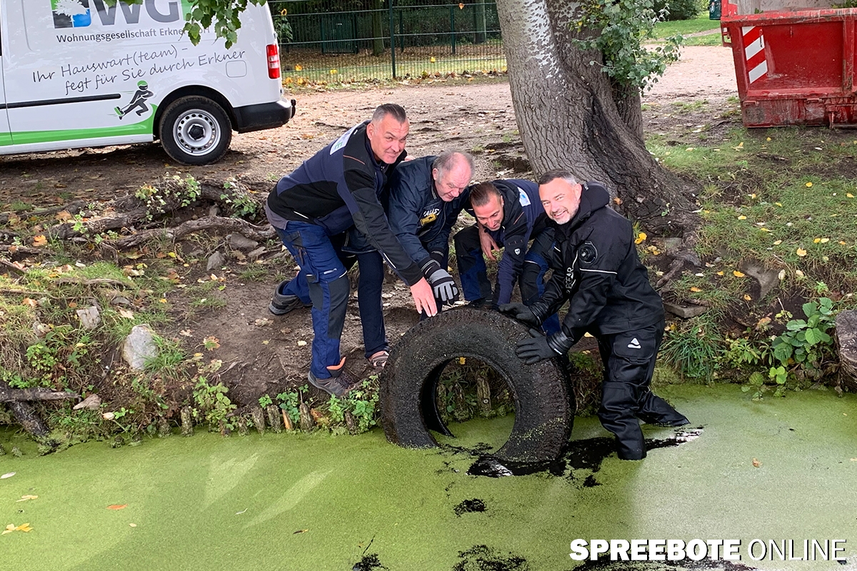 „Ein guter Anfang ist gemacht“, meinte Bürgermeister Henryk Pilz, der fahrradfahrend überall mal vorbeischaute und selbst mit anfasste. Jeder Teilnehmer konnte als kleines Präsent einen gefüllten Erkner-Stoffbeutel mit nach Hause nehmen. An dieser Stelle sei dem EDEKA-Center Erkner, Kaufland Erkner und Fairkauf für die großzügigen Spenden mit ökologischem Mehrwert gedankt. Und zum guten Schluss sei vor allem denen gedankt, die selbstlos über fünf Kubikmeter Dreck zusammensammelten.