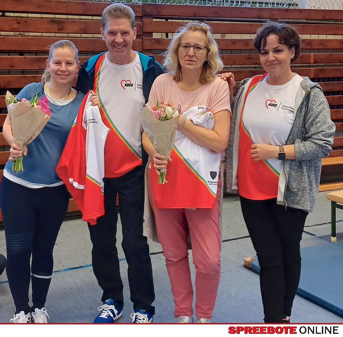 Unter dem Motto „Gemeinsam spielen, Spaß haben, Sport treiben“ treffen sich jeden Samstag Kinder bis 6 Jahren gemeinsam mit ihren Eltern bzw. Großeltern in der Sporthalle in der Holzstraße zu gemeinsamen Bewegungsspielen. Kurz vor dem Jahresende überraschten die Mitarbeiter vom AWO Mehrgenerationenhaus & Familienzentrum Sabine Hämmerling und Carsten Rowald die fleißigen Ehrenamtlerinnen, die jeden Samstag mit ganz viel Liebe ein tolles Event auf die Beine stellen. Dazu gehört, dass ein ganz großer Parcour mit vielen Sportgeräten aufgebaut wird und pünktlich um 10 Uhr beginnt dann diese Sport- und Spielstunde. Es ist einfach toll, mit welch großem ehrenamtlichen Engagement die drei Frauen Woche für Woche bei der Sache sind. Als Dankeschön gab es einen schönen Blumenstrauß, ein AWO-T-Shirt und als Höhepunkt eine tolle neue Musikbox. Denn Musik gehört zu diesem Eltern-Kind-Sport natürlich dazu. Viele Dank an Monique Grunow, Christine Fröhlich und Juliane Lehmann. Und auch vielen Dank an die vielen Eltern, die beim Aufbau und beim Abbau helfen! Und natürlich auch ein großes Dankeschön an die Stadtverwaltung Fürstenwalde, die uns die Sporthalle in ganz unkomplizierter Art zur Verfügung stellt. Wer jetzt Lust bekommt kann am Samstag um 10 Uhr in die Sporthalle Holzstraße kommen, mitmachen und einfach Spaß haben. Natürlich können Sie auch gern vorher im AWO Mehrgenerationenhaus & Familienzentrum anrufen: 03361-592260.
