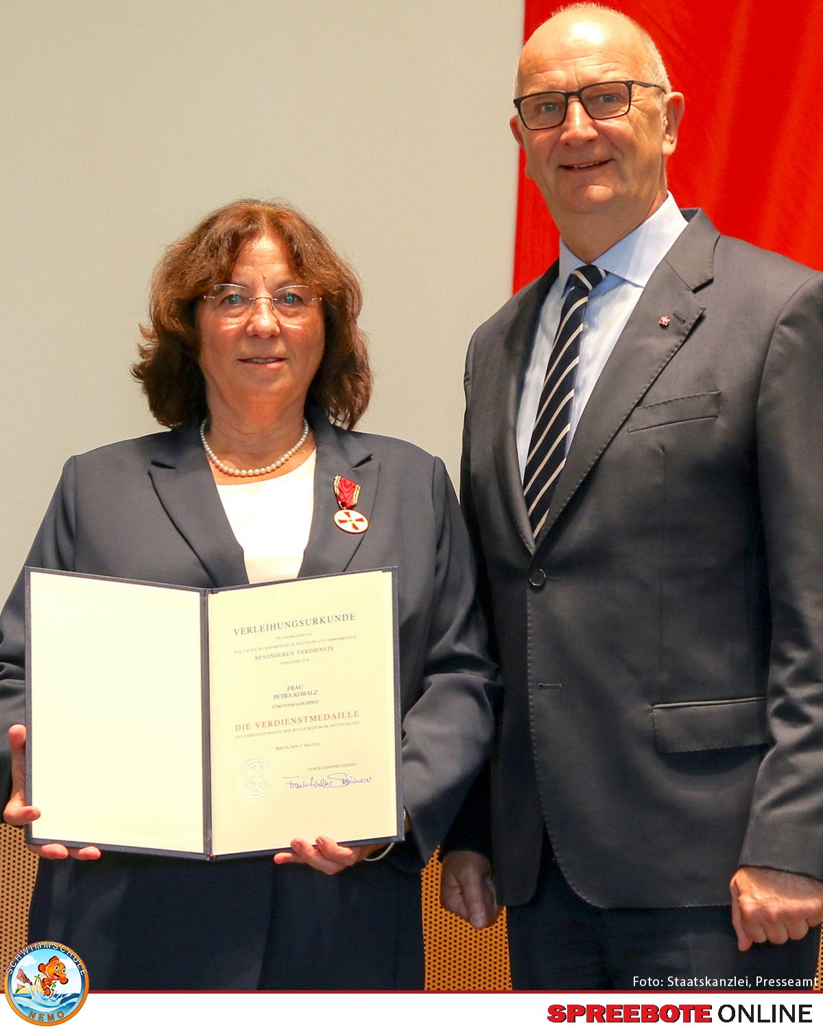 Petra Kobalz Fürstenwalde/Spree, Landkreis Oder-Spree, Verdienstmedaille des Verdienstordens der Bundesrepublik Deutschland. Die Ingenieurin hat seit Ende der 1980er Jahre als kirchliche Bauverantwortliche entscheidend zur Rettung und zum Erhalt des historischen Erbes von 240 Dorf- und Stadtkirchen in Ostbrandenburg beigetragen. Bereits als junge Bauleiterin übernahm sie anspruchsvolle Bauprojekte wie den Wiederaufbau des Fürstenwalder Doms. Sie hat wesentlich dazu beigetragen, dass mit der Restaurierung oft kriegszerstörter Kirchen auch neue Perspektiven für das Zusammenleben der christlichen und kommunalen Gemeinden entstanden sind. Eine intensive Partnerschaft verbindet Petra Kobalz mit der LAG Oderland e. V. bei der Entwicklung des ländlichen Raums. Dabei wurden bislang zwölf kirchliche Projekte umgesetzt, darunter der Aufbau der Marienkirche Wriezen. Überdies beteiligt sich Petra Kobalz an der Erarbeitung der Regionalen Entwicklungsstrategie Oderland. Zudem macht sie sich für deutsch-polnische Begegnungen und die Fürsorge für ältere Nachbarinnen und Nachbarn stark.