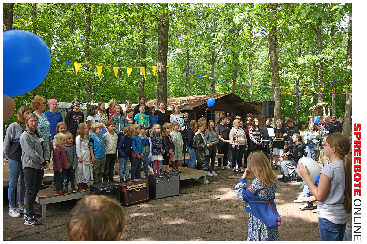 Kindertag in aller Munde – überall in der Region sind die Kinder der Mittelpunkt des Geschehens an ihrem Ehrentag. Der Montessori Campus Hangelsberg machte da natürlich auch keine Ausnahme, ganz das Gegenteil war der Fall. Der Montessori-Campus beherbergt die Grund- & Oberschule sowie das Kinderhaus. Geplant war, ein Kindertags-Fest zu veranstalten und später im Jahr noch ein Campusfest, jedoch fiel letzteres auf ein ungünstiges Datum. Darum hat sich das Organisationsteam dafür entschieden, alles an einem Tag zusammenzufassen und dem Fest eine weitere besondere Note zu verleihen. So wurde alles, was es sonst so speziell machte, in einem Tag vereint. Unter dem Motto „Draußen und gemeinsam (und) für den Frieden“ kamen rund 400 Kinder und Lehrer zusammen. Alle Schulgebäude waren geöffnet und konnten durch die zahlreichen Gäste und Eltern besichtigt werden, auch hier hatten die Schüler die Verantwortung inne. Der große Schulhof unter den Laubbäumen bildete die Bühne für zahlreiche Aktivitäten. Dazu hatte man eine tolle Idee der gemeinschaftlichen Aktion geplant, man wollte mit allen Schülern gern an einer Tafel zu Mittag essen, aber als sich abzeichnete, dass ein Unwetter nahte, wurde dieses Unterfangen nach drinnen verlegt – mit ebenso großem Engagement.