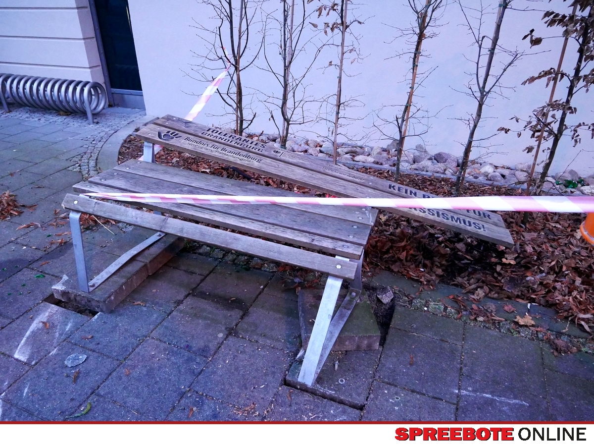In der Nacht vom 2. zum 3. Januar wurde die Bank „Bank gegen Rassismus“ vor dem Erkneraner Rathaus mutwillig zerstört und aus ihrer Verankerung samt den Gehwegplatten gerissen. Das Besondere an der Bank hat eine Rückenlehne von ca. zwei Metern, aber nur eine Sitzfläche von eineinhalb Metern. Dabei symbolisiert die fehlende Sitzfläche auf der rechten Seite den nicht vorhandenen Platz für Rassismus in dieser Stadt. Seit dem 19. April 2022 erfreute sich diese Sitzgelegenheit großer Beliebtheit. Die Stadtverwaltung Erkner hat natürlich Strafanzeige gegen Unbekannt wegen Sachbeschädigung gestellt.