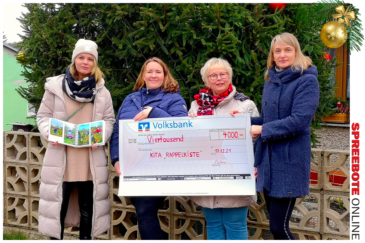 Stolze 4000,- € können wir Frau Engel von der Kita“ Rappelkiste“ als Weihnachtsgeschenk überreichen. Damit können sie Anschaffungen für ihren zerstörten Sportraum und für die vielen Kleinigkeiten in der Kita tätigen. Ein herzliches Dankeschön gilt an dieser Stelle den vielen Helfern, die den Verein unterstützt haben. Ein besonderer Dank gebührt Frau Sandy Golm, die uns, die gepfückten Äpfel zum Mosten spendete, Herrn Lüdtke, der uns die gestoppelten Kartoffeln zum Verkauf zur Verfügung stellte, dem Team der Pfarrer Bräuer Schule, die uns die Hälfte des Erlöses vom Sponsoringlauf übergab und den zahlreichen Spendern auch über die Gemeindegrenze hinaus.