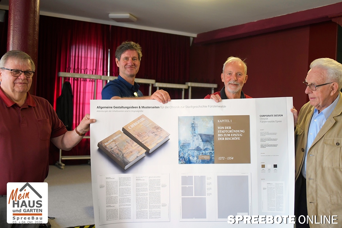 Das Geschichtswerk wird sich über 11 Kapitel und 700 Seiten erstrecken. Je nach zeitlicher Abfolge gegliedert, wird es mal mehr, mal weniger zu berichten geben. Der Bildband, so ist die Planung, ist mit 340 Seiten ebenfalls sehr komplex, hier stellt man sich vor, diese in vier Abschnitte zu unterteilen. Das Mediahaus hat sich bereits mit dem Corporate Design auseinandergesetzt und einen roten Faden durch die Chronik designt, was dem Leser helfen wird, die Geschichte der Stadt Fürstenwalde mit den einzelnen geschichtlichen Fakten gut zu verstehen. Es wird eine Einleitung geben, die durch den Museumsleiter Guido Strohfeldt formuliert wird. Auch ein Grußwort ist vorgesehen. Von wem das sein wird, wollte man zu diesem Zeitpunkt allerdings nicht sagen, es soll sich aber dabei um eine Persönlichkeit des öffentlichen Lebens handeln. Nun gibt es natürlich noch die Frage der Finanzierung, die zu bewältigen ist. Man möchte gern 500 Exemplare drucken, in einer Qualität, die dem geschichtsträchtigen Werk eine besondere Wirkung verleiht. Ganz klar wurde zu verstehen gegeben, dass man nicht beabsichtige, wie bereits bei anderen Büchern geschehen, die Unterstützer mit großformatigen Anzeigen zu verewigen. Ganz das Gegenteil ist der Fall. Klassisch gehalten, in Wort und Schrift im Einband, dem könne man zustimmen. Es gibt eine Reihe von Finanzierungsbeispielen, mit denen man schon Erfahrung hat. Eine der Vorstellungen, die viele teilen, wäre, wenn sich alle Fürstenwalder mit einem symbolischen Euro beteiligen würden. Bei 33.000 Einwohnern hätte das auch eine Symbolwirkung und wäre einmalig in der Geschichte. Sollte es also Menschen geben, die das unterstützen möchten, gibt es ein Spendenkonto bei der Sparkasse Oder-Spree, Verwendungszweck: Stadtchronik, IBAN DE 16 1705 5050 3000 1435 63. |