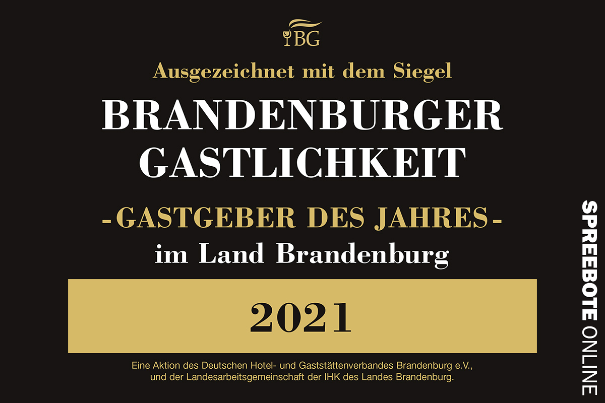 | 16 Jahre „Brandenburger Gastlichkeit“ – und erstmals wurde die Plakette „Gastgeber des Jahres“ online verliehen! Mit dem Titel und einer schwarz-goldenen Plakette darf sich erstmals das „Restaurant Schönblick“ in Woltersdorf schmücken! Wegen der aktuellen Lage der Pandemie wurde das Online-Event per Live-Streaming durchführt. Mit digitaler Begleitung aller Gastgeber, Teilnehmer an der Qualitätsinitiative sowie vieler Mitglieder und Gäste, bot das kurzweilige Programm eine willkommene Abwechslung. In einer Zeit, in der sie nicht selbst Gastgeber sein können! Live zugeschaltet war auch Wirtschaftsminister Jörg Steinbach, der nicht nur den Brandenburger Gastgeber des Jahres würdigte, sondern auch die Bedeutung der Branche für die Zukunft Brandenburgs unterstrich. Diese Online-Gala mit Musik und Zauberei sollte nicht nur Rückblick auf das vergangene Jahr, sondern gleichzeitig „Mut-Macher“ für die kommende Saison machen!