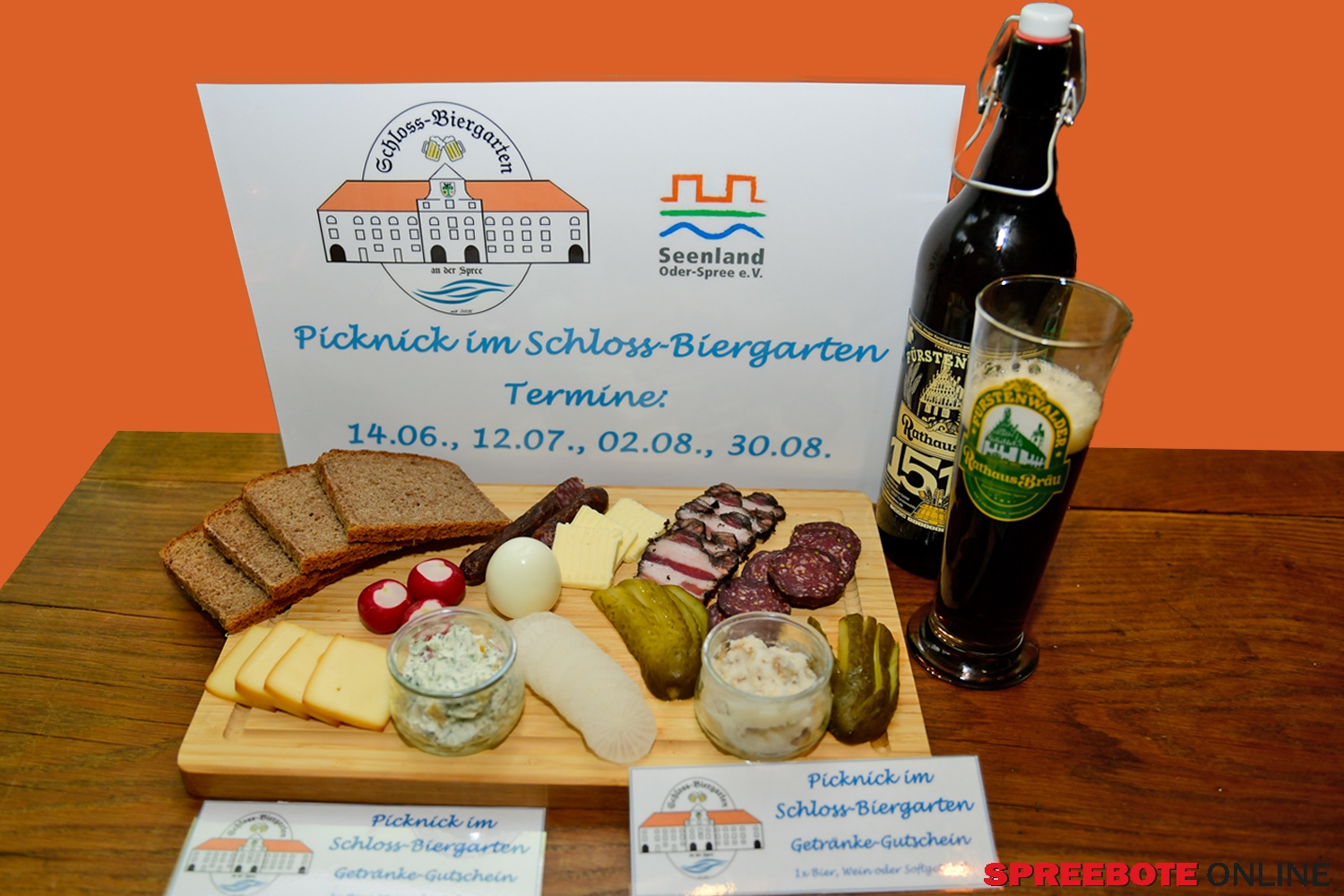 Einen weiteren starken Partner konnten sie gewinnen: den Tourismusverband Seenland Oder-Spree e.V. Über ihn wird es ab dem 1. April die Möglichkeit geben, die „Jagdschloss Brotzeit“ in Form eines Picknickkorbes zu buchen – für die vier Events oder auch einzeln im Rahmen des „Schloss Biergarten“. Dabei können auch gleich die Karten für eines der Events am 14. Juni, 12. Juli sowie am 2. und 30. August enthalten sein.