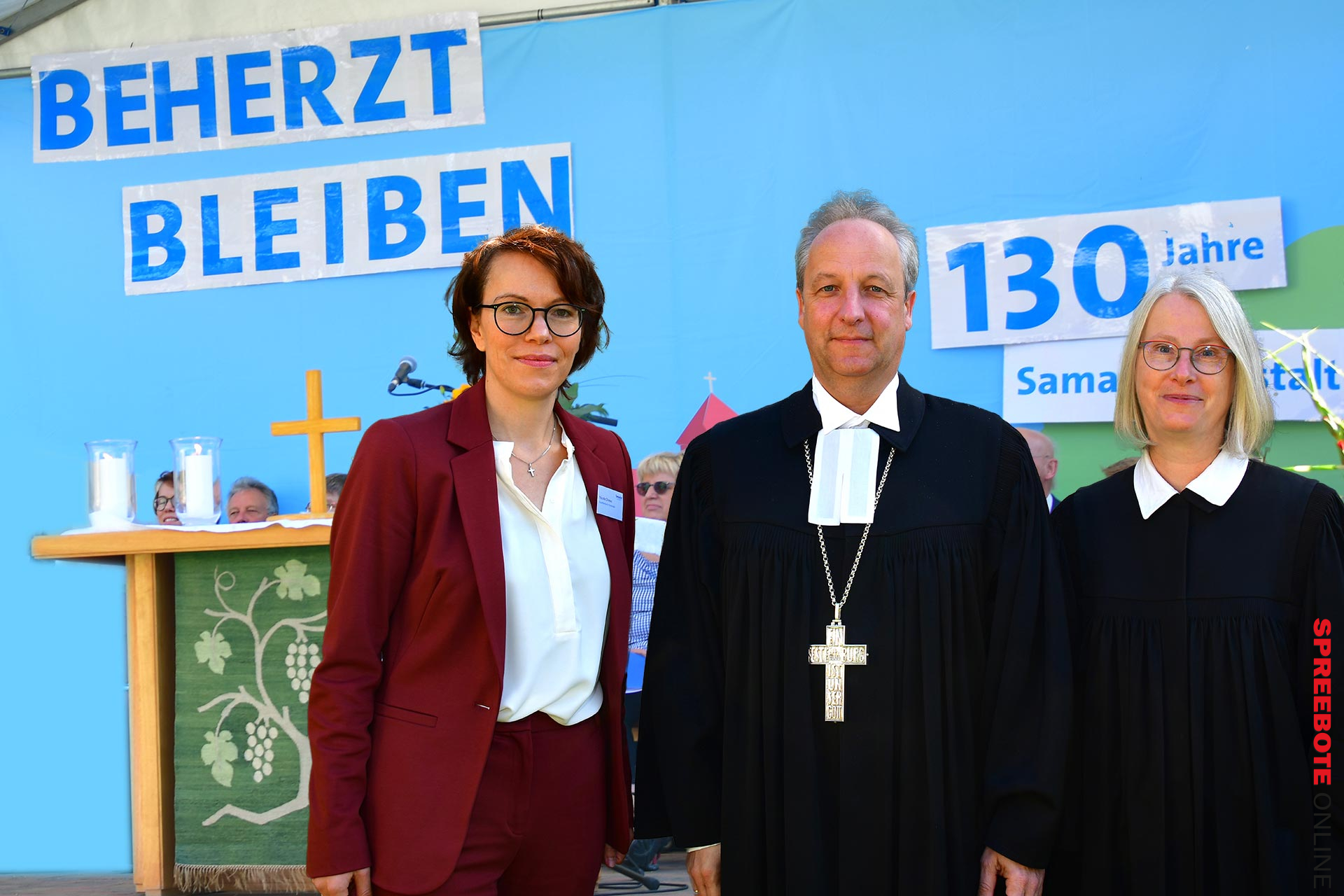 Die Samariteranstalten in Fürstenwalde feiern einmal im Jahr ihr traditionelles Samariterfest. Dieser Tag ist für alle, die in den Anstalten leben und arbeiten der Moment des Jahres, auf den alle warten und an dem jeder noch einmal besonders auflebt. Dieses Fest wird herbeigesehnt und mit ganz viel Fröhlichkeit vorbereitet und dann auch gefeiert. Die Atmosphäre wurde dabei erneut unterstrichen durch das grandiose Wetter und die für alle Besucher sichtbare Freude im Herzen der Bewohner. Traditionell wird das Samariterfest am Sonntag mit einem festlich geprägten Gottesdienst eröffnet. In diesem Jahr feiern die Samariteranstalten ihr 130-jähriges Jubiläum. Große Freude und Anerkennung schlugen dem Bischof der evangelischen Kirche Berlin/Brandenburg/Schlesische Oberlausitz, Dr. Christian Stäblein, entgegen. Für ihn war es eine Frage der Ehre, sich mit einer Andacht an die Gäste zu wenden und zu mehr Menschlichkeit und Gemeinsinn zu mahnen. Doch vorerst war es ihm natürlich wichtig, mit warmherzigen Worten seine Gratulation zu formulieren. Hier ein kleiner Auszug: