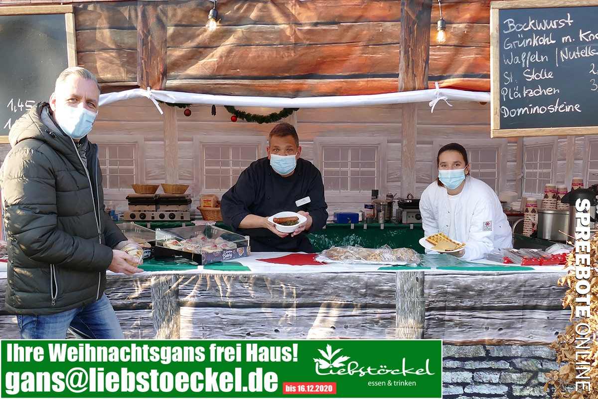 | Warum die Vorweihnachtszeit in Corona-Zeiten nicht weniger genussvoll sein muss, das beweist das Helios Klinikum Bad Saarow. Ein kleiner Hauch von Budenzauber ist hier eingekehrt, denn seit dem 8. Dezember steht draußen neben dem Haupteingang ein Zelt, in dem das Team der klinikeigenen Cafeteria viele Leckereien zum Mitnehmen anbietet. Neben frischgebackenen Waffeln, Stollengebäck und Plätzchen sowie alkoholfreiem Glühwein, Kaffee und Kakao gibt es im „Helios Schmackofatz“ auch Grünkohl mit Knacker, Schmalzstullen, Bockwurst und belegte Brötchen. Ergänzt wird das tägliche Basisangebot immer montags durch ein wechselndes Eintopfgericht.