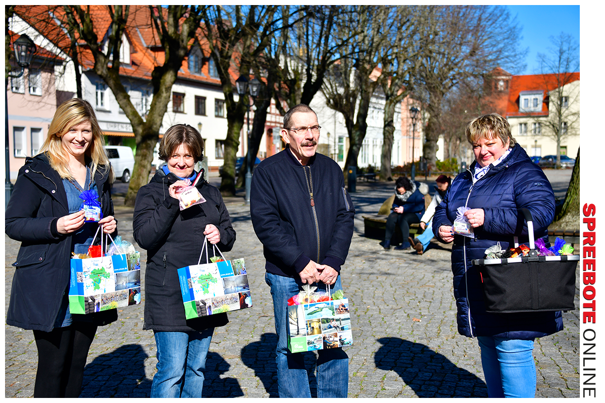 Die Bürgermeisterin und die Gleichstellungsbeauftragte der Stadt Storkow, Cornelia Schulze-Ludwig und Carmen Siebenhaar, waren gemeinsam mit Heinz Bredahl, dem Vorsitzenden der Stadtverordnetenversammlung der Stadt Storkow, sowie Franziska Münn, die für Öffentlichkeitsarbeit im Stadtgebiet Storkow zuständig ist, unterwegs. Sie gratulierten traditionell zum 8. März, dem Internationalen Frauentag, allen Frauen und überreichten ihnen ein kleines Geschenk der Wertschätzung. Das kam natürlich sehr gut an und die ehrliche und manchmal auch überraschte Freude auf beiden Seiten war sehr herzlich. Man hatte sich für diesen Tag bewusst für eine Köstlichkeit entschieden sowie ein Tütchen mit Blumensamen, damit die Freude des Augenblicks noch lange nachwirken möge. 2.500 Säckchen wurden verteilt und die 14 Ortsteilvorsteher der Storkower Ortsteile haben sich ebenfalls an der Aktion beteiligt.