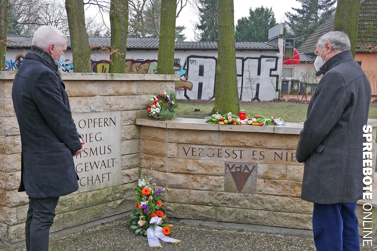 Aus diesem Anlass weht vor dem Rathaus in Erkner die Deutschlandflagge. Der Vorsitzende der Erkneraner Stadtverordnetenversammlung, Lothar Eysser, und der Bürgermeister der Stadt Erkner, Henryk Pilz, haben, wie andere ebenfalls ohne Öffentlichkeit, aber mit Präsenz, an der Erinnerungsstätte Neu Zittauer Straße der Opfer des Holocaust gedacht. Pfarrer Carsten Schwarz der Evangelischen Kirchengemeinde Erkner hat zum Gedenktag eine Andacht gehalten, die unter der www.evangelische-osw.de abrufbar ist. |