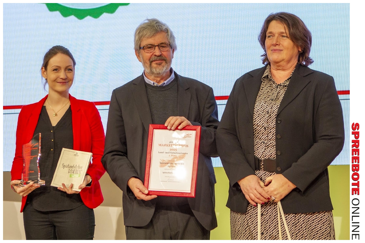 Mit den „Spätaufstehertouren“ gewinnt der Tourismusverband Seenland Oder-Spree den 2. Platz des pro agro-Marketingpreises in der Kategorie „Land- und Naturtourismus“. Im Rahmen der Internationalen Grünen Woche nahmen Geschäftsführerin Ellen Rußig sowie Marketingmitarbeiterin Marie Kessler die Auszeichnung von Landwirtschaftsminister Axel Vogel und pro agro Geschäftsführer Kai Rückewold am ersten Messetag entgegen.