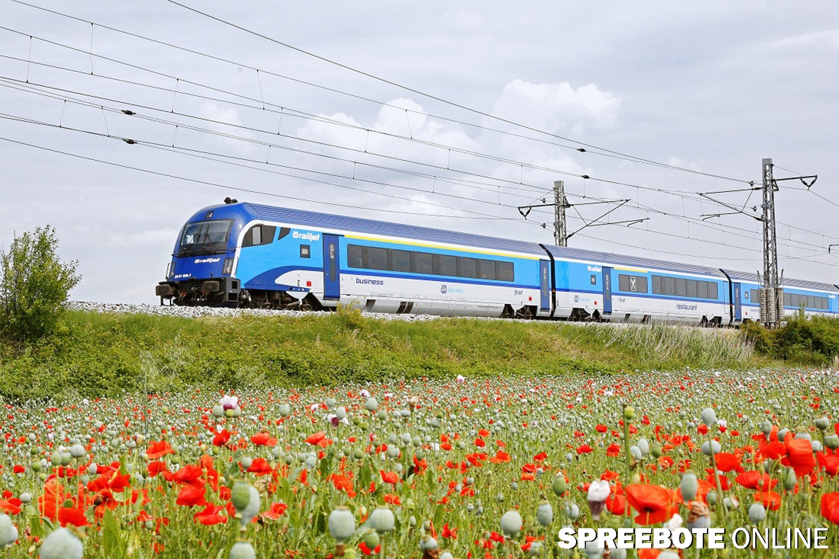 | Ein neuer Zug verbindet ab Morgen Berlin und Dresden mit Prag, Wien und Graz. Die neue tägliche Railjet-Verbindung in Kooperation mit der Tschechischen Bahn und den Österreichischen Bundesbahnen fährt auf der Route des legendären „Vindobona“-Express und bietet ICE-Komfort. An Bord erwartet die Fahrgäste ein gastronomisches Angebot, ein Bereich für Familien, Laptop-Steckdosen und kostenloses WLAN. Auch die Fahrradmitnahme ist nach Reservierung möglich.