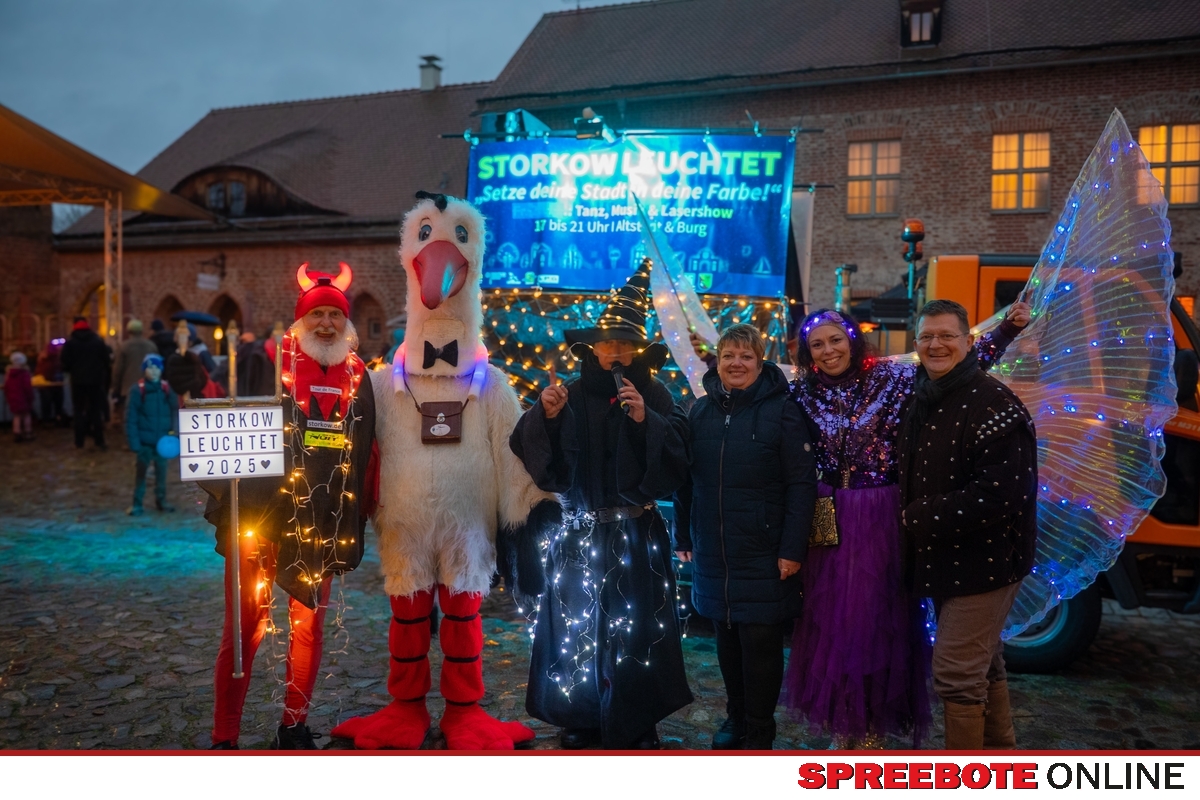 Es ist eine gelebte Tradition, wenn es im November heißt „Storkow Leuchtet“. Der Höhepunkt ist der sensationelle Lampionumzug der Kinder und selbst Regen oder Sturm können die Begeisterung nicht trüben. Für die Kinder ist der Umzug mit ihrem Lampion ein ganz besonderes Erlebnis, und auch die Eltern lieben dieses liebevolle Fest gleichermaßen. Organisiert und geplant bis ins kleinste Detail von der Stadt Storkow mit ihren vielen engagierten Helfern, ist es immer wieder ein magischer Moment. Dazu gehört die herzliche Begrüßung auf dem Hof der Burg Storkow durch das Stadtmaskottchen „Storki“, ein beliebtes Fotomotiv, die Bürgermeisterin Cornelia Schulze-Ludwig, die auf Toleranz und Vielfalt aufmerksam macht, dem Tourenteufel Didi Senft der ebenso zur Stadt Storkow gehört, sowie der Zauberer und die bunte Fee, deren leuchtende Flügel eine heimliche, zauberhafte Atmosphäre schaffen. Der Zauberer sorgt für Musik und begleitet die Kinder mit fröhlichen Kinderliedern voller Rhythmus auf ihrem Umzug. Von der Burg aus zieht der Lampionumzug begleitet von der Freiwilligen Feuerwehr Storkow durch die Straßen. Voller Spannung und Freude durchqueren sie die Gassen, die in ein buntes Licht getaucht sind, bis sie den illuminierten Marktplatz erreichen wo sie schon sehnsüchtig erwartet werden. Derweil stimmte die Band „Treibsand“ die Gäste auf das Fest ein. Der Marktplatz war unterdessen gesäumt von zahlreichen kulinarischen Highlights und leuchtete in fröhlichen Farben, die das Fest der „Toleranz und Vielfalt“ auf liebevolle Weise untermalten. Mit Eintreffen des Lampionumzuges bekam das Fest ein Leuchtfeuer der Gefühle, das Kinder, Eltern und Gäste gleichermaßen verzauberte. Eine kurzweilige Eröffnung und schon steppte der Storki eine Show für Kinder und Gäste. Im weiteren Verlauf des Abends präsentierten sich die Wirtschaftsstandorte der @see-Region, begleitet von einer beeindruckenden, farbenfrohen Lasershow. Später lud DJ Dome die Gäste ein, unter dem funkelnden Sternenhimmel schwungvoll weiter zu feiern.