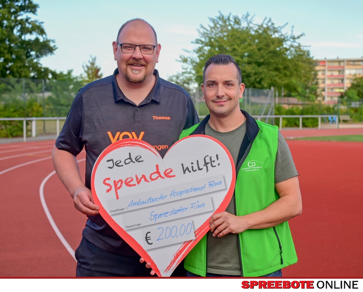 Bei größeren Turnieren, wie zum Beispiel dem erst kürzlich erfolgreich durchgeführten 3. Gerüstbau-Fürstenwalde-Cup, den die Spreedarter organisiert und ausgerichtet haben, wurde zugunsten des Ambulanten Hospizdienstes Fürstenwalde e.V. gesammelt. Es ist eine Frage des Engagements, betont Thomas Schmidt, Präsident der Spreedarter. Von Anfang an sei es Tradition gewesen, bei solchen Veranstaltungen gemeinnützige Organisationen aus der Region zu unterstützen – etwa den Jugendclub Beerfelde, das Frauenhaus Fürstenwalde oder aktuell den Ambulanten Hospizdienst. Diese Einrichtungen leisten mit viel Herzblut und Engagement einen wichtigen Beitrag für unsere Gesellschaft. Es ist uns eine Herzensangelegenheit, sie dabei zu unterstützen, so Schmidt weiter. Die Spende zugunsten des Ambulanten Hospizdienstes Fürstenwalde e.V. nahm Tom Knoll entgegen – ein bekanntes Gesicht in der Region, das viele noch aus seiner sportlichen Laufbahn im Fußball kennen. Umso interessanter war es zu hören, welchen beruflichen Weg er eingeschlagen hat. Heute unterstützt er Menschen in besonders herausfordernden Lebensphasen – mit großer Hingabe und Menschlichkeit.