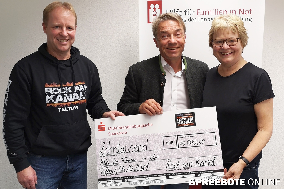 Das Benefizkonzert „Rock am Kanal“, auf dem Hafengelände in Teltow, fand Ende August fand unter dem Motto „Musik für einen guten Zweck“ statt. Es kamen 2.300 Rockbegeisterte zusammen, um ein einzigartiges Konzert zu erleben. Heute übergab das Rock-am-Kanal-Team den Spendenscheck in Höhe von 10.000 Euro an den Schirmherrn der Stiftung, Günter Baaske.