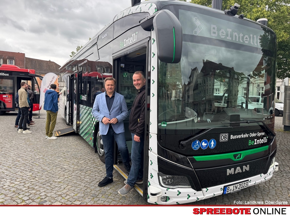 In der letzten Woche präsentierte der Landkreis Oder-Spree, die Stadt Beeskow und DB Regio Bus Ost auf dem Marktplatz in Beeskow eine moderne Mobilitätslösungen. Im Mittelpunkt: ein autonom fahrender 12-Meter-Bus aus dem BeIntelli-Projekt, begleitet von Testfahrten und Fachgesprächen mit Experten der TU Berlin und DB Regio. Ein weiteres Highlight war der Medibus – eine mobile Arztpraxis, die das Potenzial autonomer Technologien im ländlichen Raum aufzeigte. Besuchern nutzten die Gelegenheit zum Austausch über Chancen und Herausforderungen autonomer Angebote im Nahverkehr. Bei der Präsentationseröffnung des Aktionstages unterstrichen Landrat Frank Steffen und Beeskows Bürgermeister Robert Czaplinski die Bedeutung neuer Mobilitätslösungen im ländlichen Raum. Während Steffen die Rolle des Landkreises als Modellregion für Projekte wie DALLI, PlusBus und Mikromobilität hervorhob und autonomes Fahren als nächsten Schritt für verlässliche und bezahlbare Mobilität bezeichnete, betonte Czaplinski die besonderen Herausforderungen in Beeskow. Autonome Angebote könnten künftig schlecht angebundene Ortsteile besser erreichen – und langfristig sogar den Weg zu einer autofreien Innenstadt ebnen.