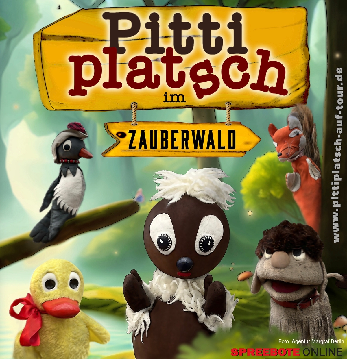 Nach fünf Jahren kehrt der berühmte Kobold des DDR-Fernsehens am 13. Oktober um 15 Uhr, in die St.-Marien-Kirche Frankfurt (Oder) zurück: „Pittiplatsch im Zauberwald“, heißt das neue Programm. Das Puppentheater wird mit originalen Fernsehpuppen gespielt. Tickets gibt es online über Reservix und bei angeschlossenen Vorverkaufsstellen wie der Deutsch-Polnischen Tourist-Information.