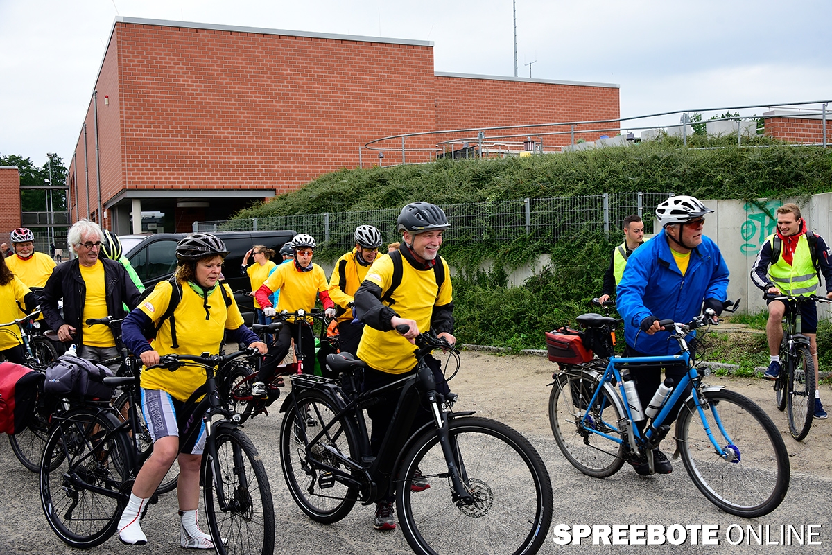 Über 1.000 Menschen der Region kamen zusammen und fuhren damals 85 Kilometer über Berlin durchs Brandenburger Tor nach Potsdam, um einen Achtungspunkt zusetzen. Für die Tour hat Ministerpräsident Dietmar Woidke die Schirmherrschaft übernommen und sandte ein Grußwort an die Teilnehmer: Gerade jetzt gilt es, öffentlich Flagge gegen Populismus und Rechtsextremismus zu zeigen. Demokratie und Mitmenschlichkeit stehen auch in angespannten Zeiten, wie wir sie gegenwärtig erleben, nicht zur Disposition. Die Organisatoren der Tour haben sich mit der Motorradstaffel der Polizei und den Johannitern Oder-Spree getroffen und die Route festgelegt. Sie waren in Mannschaftsstärke mit dabei und sicherten die Strecke, die über Neu Zittau, Königs Wusterhausen, Wolzig, Storkow, Spreenhagen und Grünheide führte, ab. Dazu kam noch ein Rettungsbus von der Barnimer Busgesellschaft, der half, wenn Radfahrer nicht mehr konnten, sie aufnahmen und wieder zurück an den Startpunkt begleiteten. |