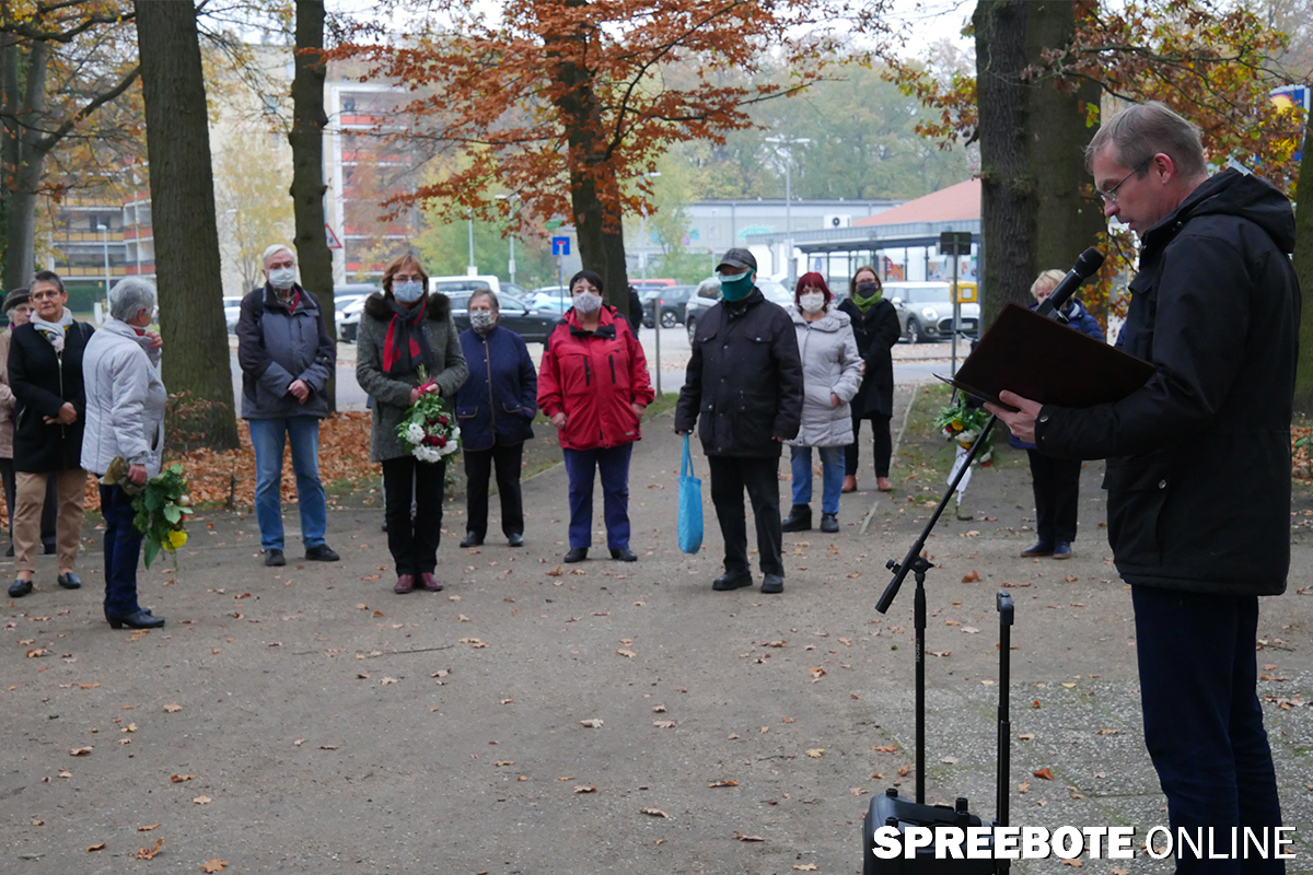 | In Erinnerung an die schrecklichen Geschehnisse in der Nacht vom 9. zum 10. November 1938, der Reichspogromnacht, fand am Montagnachmittag an der Erinnerungsstätte Hohenbinder Weg / Ecke Neu Zittauer Straße ein öffentliches stilles Gedenken statt. Die Stadt Erkner sowie die beiden großen Kirchengemeinden hatten dazu eingeladen.