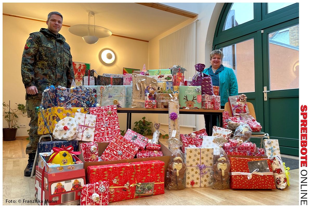 Mitte November hatte die Bürgermeisterin der Stadt Storkow, Cornelia Schulze-Ludwig, zur Spendenaktion „Storkower spenden Geschenke für Kinder in den stationären Hilfen zur Erziehung“ aufgerufen. Denn insgesamt 59 Kinder und Jugendliche im Alter von 2 bis 18 Jahre, die von den Organisationen Kleeblatt GmbH, Storkower Sonnenschein gGmbH, Kinderhäuser Oder-Neiße e.V. – Projekt Wolfswinkel und in zwei Erziehungsstellen betreut werden und in deren Einrichtungen leben, haben ihre Wunschzettel gestaltet. Mitte November wurden über die Internetseite der Stadt für diese Wunschzettel Geschenkepaten gesucht und gefunden. „Ein herzliches Dankeschön geht an alle Geschenkepaten und Soldatinnen und Soldaten, die den Kindern mit ihrer Spendenbereitschaft ein Lächeln ins Gesicht zaubern“, so Cornelia Schulze-Ludwig bei der Übernahme weiterer Geschenke, die am Montag vom Kommandeur Oberstleutnant Marc Tachlinski an sie zur Weitergabe an die Einrichtungen übergeben wurden.