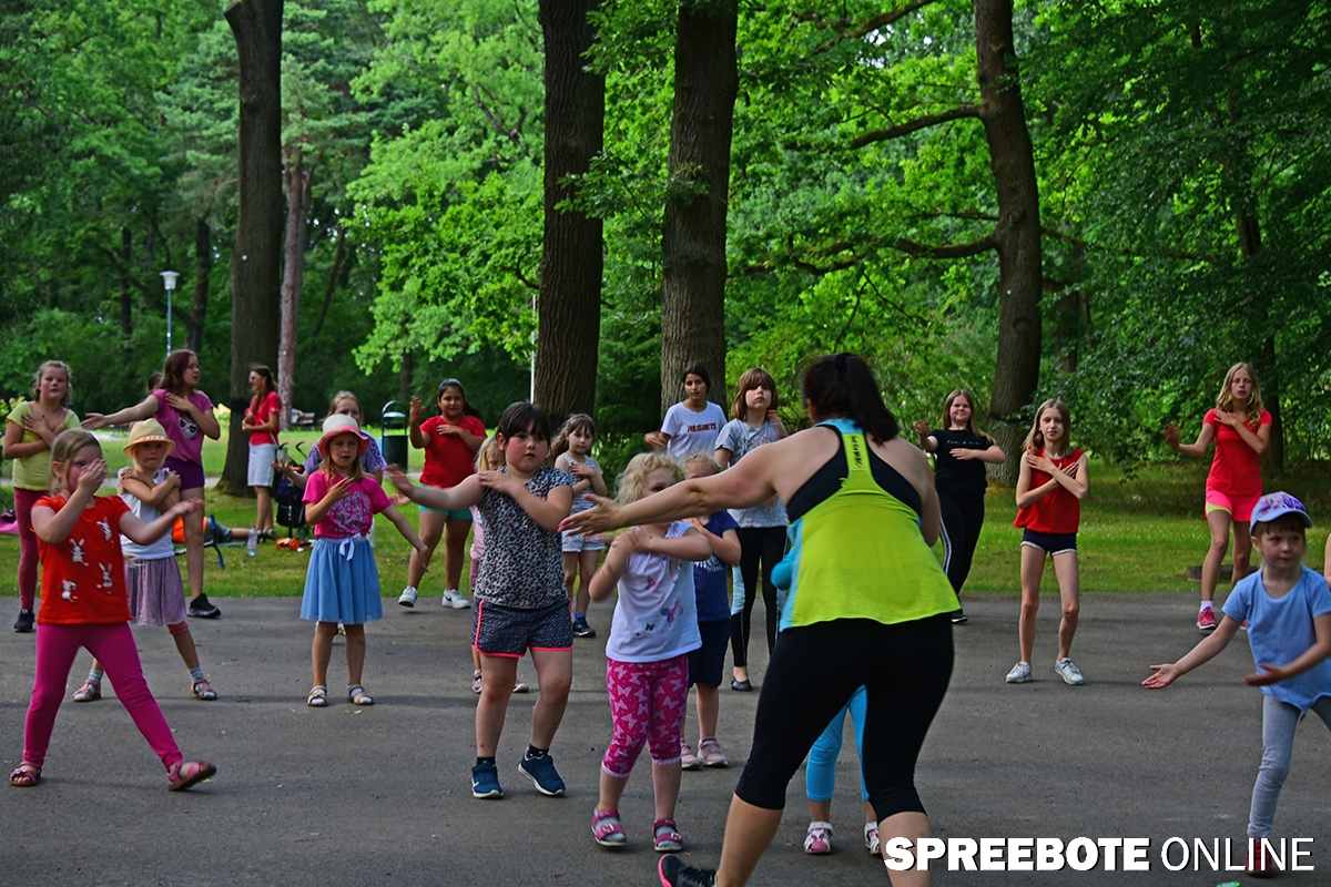 | Eine zauberhafte Idee zum Ferienbeginn: Jetzt ist es ja schön warm, das Sonnenlicht bricht sich am Blätterdach im Park in Fürstenwalde und die einstigen Bühnen werden wieder mit Leben erfüllt. Das Tanzstudio Miral hat es, ebenso wie viele ihrer Zunft in der Region, geschafft, mit neuen frischen Ideen das tänzerisch Erlernte nicht aus den Augen zu verlieren. Dabei halfen ganz besonders die verschiedenen neuen Medien, die man für sich entdeckt hat und die zum Gelingen ganz entscheidend beigetragen haben. Der Frühsport soll wohl super angekommen sein, so Marina Nickel, und zwar fünf Mal die Woche. Die Eltern waren die treibende Kraft hinter dieser tollen Idee.