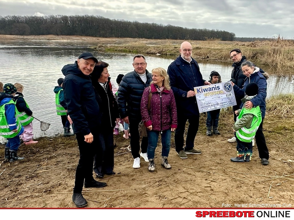 Die Mitglieder des Kiwanis-Clubs Frankfurt (Oder) unterstützen durch ihre ehrenamtliche Tätigkeit, insbesondere hilfsbedürftige, Kinder und Jugendliche in der Region. Vor diesem Hintergrund beteiligt sich der KC Frankfurt (Oder) an dem gemeinsamen neuen Projekt des Horts „Fröbelsternchen“ der Fröbel-Gruppe und übergab am Dienstagvormittag auf der Insel Ziegenwerder symbolisch eine größere Spende an die Projektverantwortliche Frau Neutert-Pace. Der Hort „Fröbelsternchen“ lädt Kinder ein, die Oder einmal unter Wasser zu belauschen und Geräusche sichtbar zu machen. Gemeinsam wird unsere „alte“ Dame „Die Oder“, die so Vieles zu erzählen hat, erkundet, wenn wir nur aufmerksam zuhören. Geleitet wird das Projekt von Claudia van Hasselt und Nicolas Wiese von dem Kunst-Musik-Ensemble FrauVonDa. Die Mezzosopranistin und