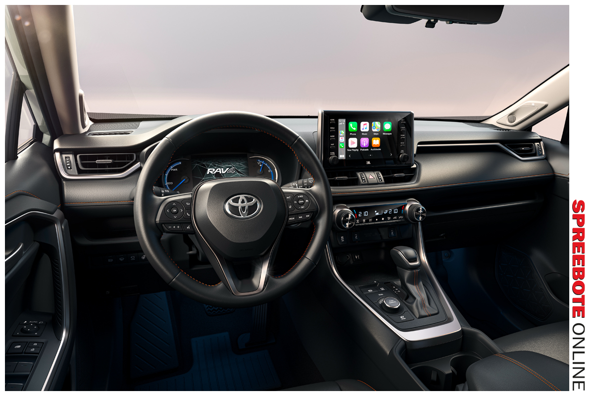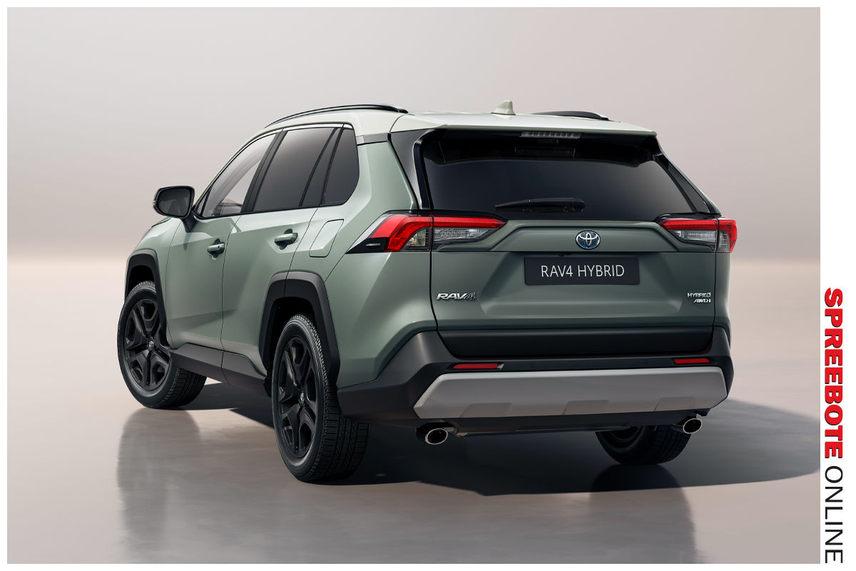 Einzigartig ist die Zweifarblackierung des RAV4 Adventure: Während die Karosserie in „Urban Khaki“ gehalten ist, sind Dach, A-Säulen und Heckspoiler in dynamic grey lackiert – eine Hommage an den klassischen Toyota FJ40 Land Cruiser. Im Innenraum gibt es spezielle schwarze Sitzpolster in hochwertiger Ledernachbildung mit tief abgesteppten Rückenpartien und Sitzflächen. Orangefarbene Ziernähte bilden einen harmonischen Kontrast. Den Vortrieb übernimmt der bewährte Toyota Hybridantrieb, der beim RAV4 Adventure serienmäßig mit einem weiteren kleinen Elektromotor an der Hinterachse und dadurch mit einem intelligenten Allradantrieb verbunden ist. Die Kombination aus den Elektromotoren und einem 2,5 Liter großen Vierzylinder-Benziner, der einen der höchsten thermischen Wirkungsgrade alle Serienmotoren weltweit aufweist, entwickelt eine Systemleistung von 163 kW/222 PS. Die Anhängelast (gebremst) beträgt bis zu 1.650 Kilogramm.