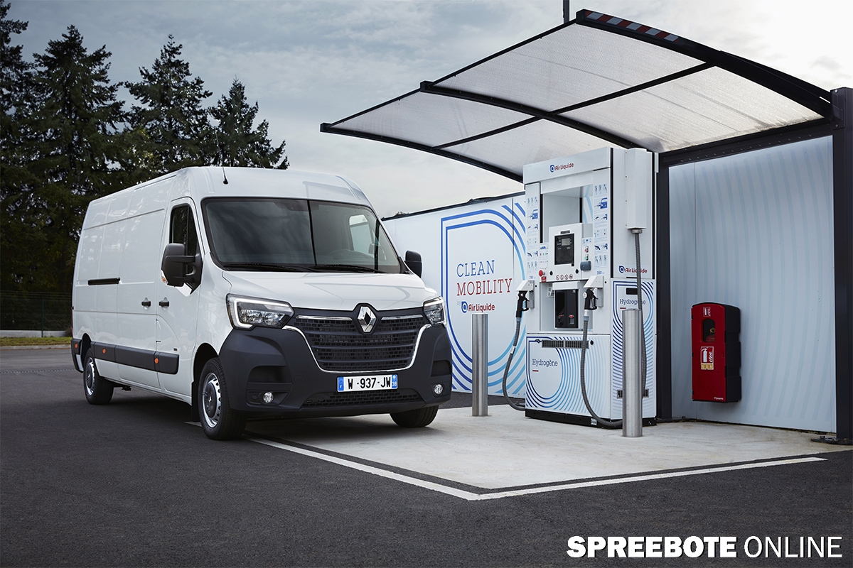 Mit Kangoo Z.E. Hydrogen und Master Z.E. Hydrogen bringt Renault zwei neue Varianten seiner elektrischen Nutzfahrzeuge auf den Markt. Neben Strom „tanken” sie reinen Wasserstoff für die Brennstoffzellen, die als Range Extender dienen. Ergebnis: Die Reichweite des Master Z.E. Hydrogen steigt von 120 Kilometern im WLTP-Prüfzyklus auf 350 Kilometer. Der Kangoo Z.E. Hydrogen kommt 370 Kilometer statt wie bisher 230 Kilometer weit.
