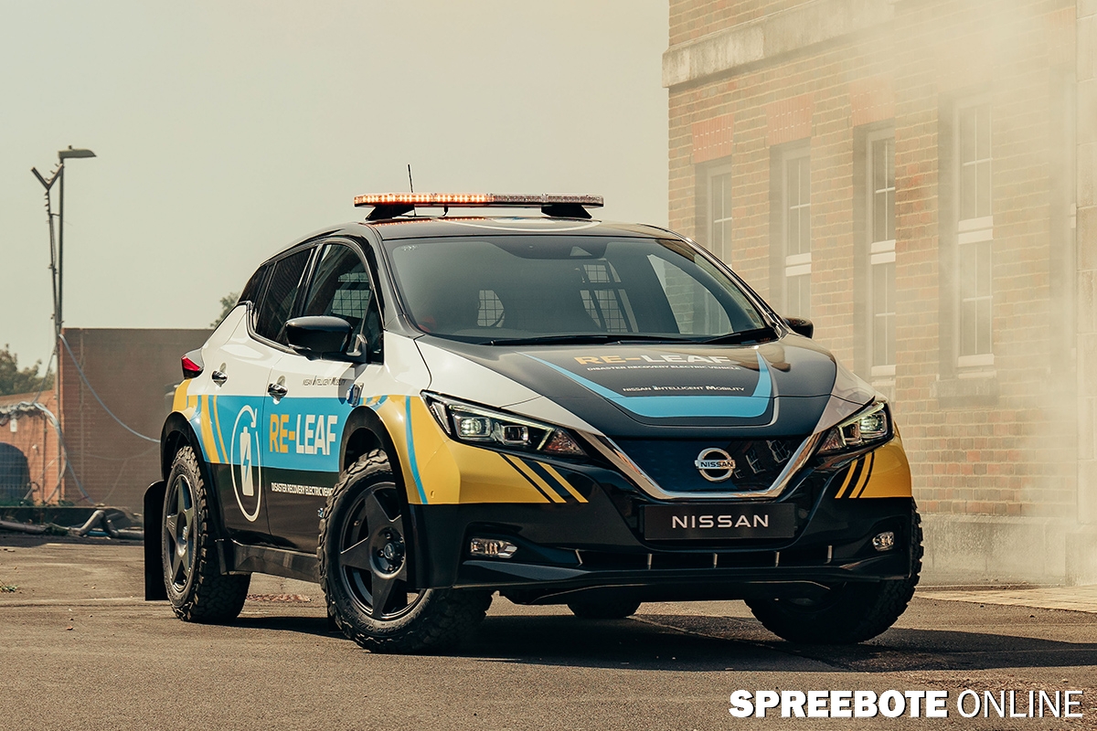 | Der Nissan LEAF als mobiles Kraftwerk nach Naturkatastrophen oder extremen Wetterphänomenen: Auf Basis des ersten in Großserie produzierten Elektroautos der Welt hat Nissan einen Prototyp namens RE-LEAF entwickelt, der dank höherer Bodenfreiheit und weiterer Modifikationen direkt ins Zentrum von Katastrophengebieten gelangt, um dort Elektrizität für die Notversorgung und den Wiederaufbau bereitzustellen. Über außen angebrachte wasserdichte Steckdosen lassen sich elektrische Geräte direkt mit der leistungsstarken Lithium-Ionen-Batterie des Fahrzeugs verbinden. Auf diese Weise können beispielsweise medizinische Geräte, Kommunikationsmittel, Beleuchtung und andere Ausrüstung auch nach einem Ausfall der öffentlichen Stromversorgung betrieben werden.