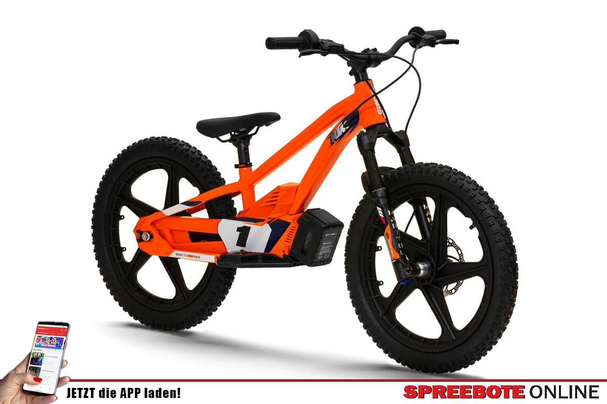 Hinzu kommen eine Sitzhöhe von 330 mm, ein TIG-geschweißter Aluminiumrahmen, 12-Zoll-Verbundräder mit Luftbereifung und die Möglichkeit, es ohne Antrieb anzuschieben und mit ihm loszurollen. Damit ist dieses Laufrad die ideale Möglichkeit, um das Gleichgewicht zu trainieren. Von einer schnell trennbaren Lithium-Ionen-Batterie mit 20 V in Industriequalität mit einer Kapazität von 2 Ah versorgt, bietet es 30 bis 60 Minuten Fahrzeit. Auch das Aufladen der Batterie ist rasant. Das KTM SX-E 1.12 kann auf elektrische Leistung mit drei Leistungsauswahlstufen umgeschaltet werden. Im Trainingsmodus ist die Geschwindigkeit auf nur 8 km/h begrenzt, die sich mit Abstufungen auf eine Spitzengeschwindigkeit von bis zu 14 km/h im Fortgeschrittenenmodus steigern lässt. Mit der Einstiegsgeschwindigkeit können junge Fahrer ihr Selbstvertrauen langsam aufbauen und gleichzeitig die Hand-Augen-Koordination, die Beherrschung des Gasdrehgriffs und das Gleichgewichtsempfinden immer weiter ausbilden. Weitere Modell in Spezifikation und Handhabung bilden die KTM SX-E 1.16 und KTM SX-E 1.20 .
