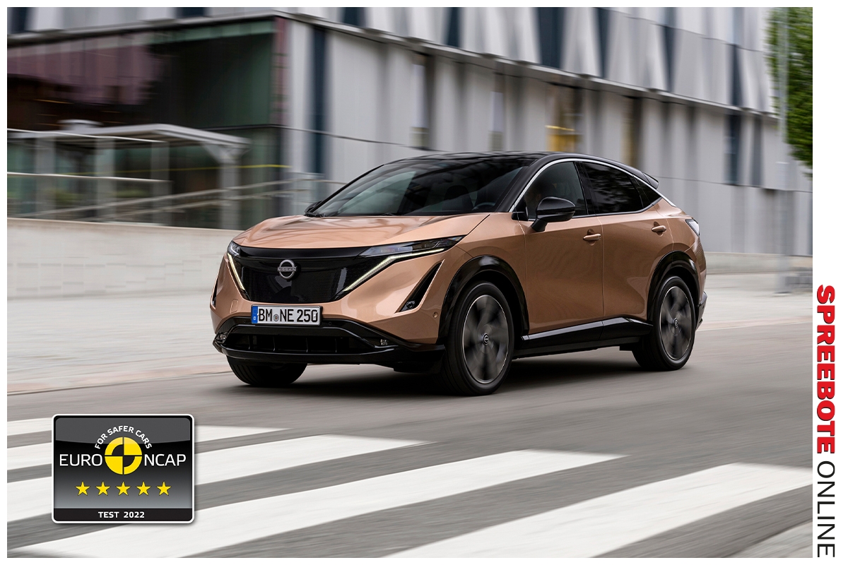 Der vollelektrische Nissan Ariya und der Nissan X-Trail e-Power glänzen im aktuellen Euro NCAP Crashtest mit fünf von fünf Sternen. Die Bestwertung der unabhängigen Prüforganisation, die auch für den Juke Hybrid und den Qashqai e-Power gilt, unterstreicht die kompromisslose Sicherheit der elektrifizierten Nissan Modelle.