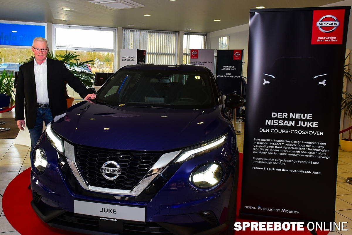 Die Vorabpremiere des neuen Nissan Juke bei K & S Oder-Spree in Fürstenwalde war ein schöner Erfolg. Über den Tag kamen die Gäste und schauten sich den ziemlich glanzvollen Wagen, den Juke der neuesten Generation an. Dafür wurde eigens eine Hälfte der Verkaufsfläche für die Premiere des Newcomers in Szene gesetzt. Die Verkaufsberater waren zuvor in Barcelona und wurden dort mit dem neuen Nissan Juke vertraut gemacht. Demzufolge war die Überraschung für die Gäste umso größer, denn alle Highlights, worüber derzeit die Autowelt spricht, sind in diesen Juke mit eingeflossen. Die Formsprache hat sich der Zukunft angepasst, auch im Innenraum ist alles nun noch größer und das Einsteigen erfolgt auf Augenhöhe. Alles in allem ist der neue Juke eine gelungene Kombination von alltäglicher Leichtigkeit mit viel sportlichen Genen – selbstverständlich auch für das Gelände.