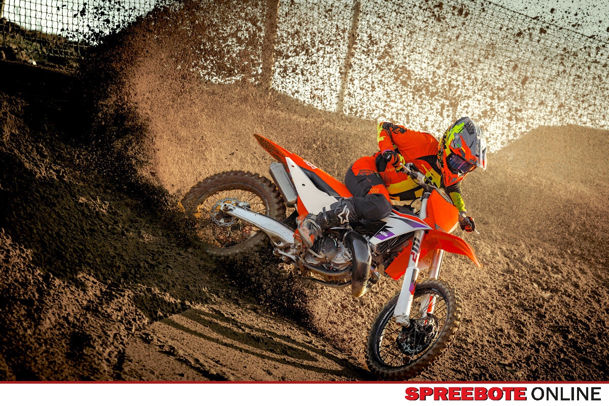 Nach der Einführung der runderneuerten KTM SX Modelle für dieses Jahr steht nun die KTM-Motocross-Reihe für das kommende Jahr an der Startlinie und bringt überarbeitete Fahrwerkseinstellungen, sowie einen brandneuen Look mit. Schlanker, leichter und vom Fahrer perfekt kontrollierbar, schafften es die KTM SX-Modelle auf Anhieb an die Spitze: Sie sind die innovativsten und leistungsstärksten READY TO RACE Motocross-Serienmotorräder, die je gebaut wurden. Eine kurze Erinnerung: Die KTM SX-Modelle 2023 verfügen über ein von Grund auf neu entwickeltes Chassis, aufgebaut auf einem hydrogeformten, lasergeschnittenen und robotergeschweißten Rahmen, einem zweiteiligen, polyamidverstärkten Aluminium-Heckrahmen und einer hohlen Schwinge aus Aluminiumguss.