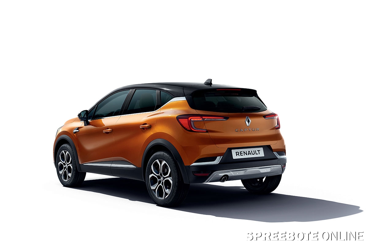 Designmerkmale, mit denen Renault den SUV-Charakter des neuen Captur betont, sind unter anderem die im Vergleich zum Vorgänger höhere Schulter- und Fensterlinie, niedrigere Fensterausschnitte, weiter ausgestellte Kotflügel sowie der breite Unterfahrschutz vorne und hinten. Hinzu kommen die leicht geschwungene, in einem markanten Dachspoiler auslaufende Dachlinie sowie die neu gestaltete hintere Dachsäule. Die Hauptscheinwerfer sind bereits ab der Basisausstattung in Voll-LED-Technik ausgeführt. Eingerahmt werden sie von weit nach unten gezogenen LED-Tagfahrlichtern in der markentypischen Form eines asymmetrischen „C”. Die schmal geschnittenen LED-Rücklichter nehmen die C-Form der Tagfahrlichter auf. Ihre weit außen liegende Position betont die Fahrzeugbreite.