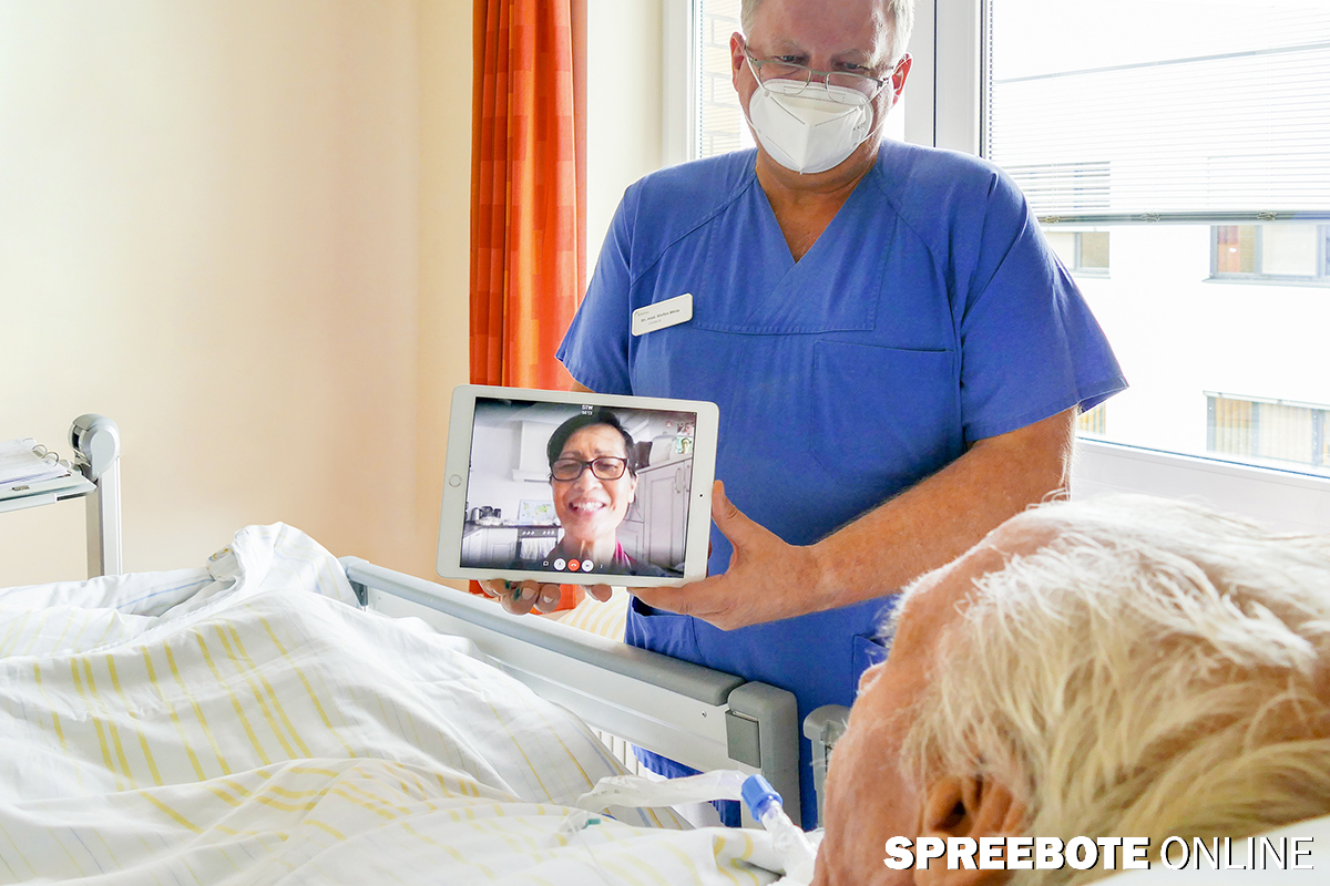 | Zum Schutz der Patienten und Mitarbeiter vor dem Corona-Virus gilt seit dem 3. Oktober im Helios Klinikum Bad Saarow ein Besuchsverbot. Da für Patienten und ihre Angehörigen diese Situation besonders belastend ist, stellt das Klinikum Tablets für Videochats zur Verfügung. Bereits seit vier Wochen sind Patientenbesuche im Helios Klinikum Bad Saarow nicht erlaubt und ein Ende dieser Regelung ist nicht absehbar. Für Patienten und Angehörige ist dies eine extreme Belastung. Vor allem ältere Menschen trifft das Besuchsverbot hart. „Wir wissen, dass sich viele Angehörige um ihre Liebsten sorgen, aber wir können momentan Besuche nur in absoluten Ausnahmefällen gestatten“, erklärt Klinikgeschäftsführerin Carmen Bier.