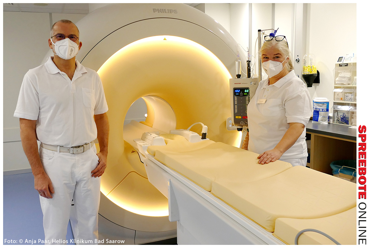 Das Helios Klinikum Bad Saarow hat im Rahmen einer sechswöchigen Umbauphase eines seiner beiden Magnetresonanztomographie-Geräte (MRT) im Institut für Radiologie aufwendig modernisiert. Mit dem Umstieg des „alten“ MRTs auf ein volldigitales Gerät kann nun bei besserer Bildqualität 40 Prozent schneller untersucht werden. „Wir haben ein so gut wie neues System. Der Magnet des analogen MRTs konnte während des Umbaus auf ein digitales Breitband-MR-System im Untersuchungsraum verbleiben, wodurch wir die Störung unseres klinischen Betriebes auf ein Minimum reduzieren konnten. Auch die Kabine mit ihrer Hochfrequenz-Abschirmung wurde dabei vollständig erneuert“, freut sich Dr. med. Dipl.-Phys. Jan Petersein, Chefarzt des Instituts für Radiologie.