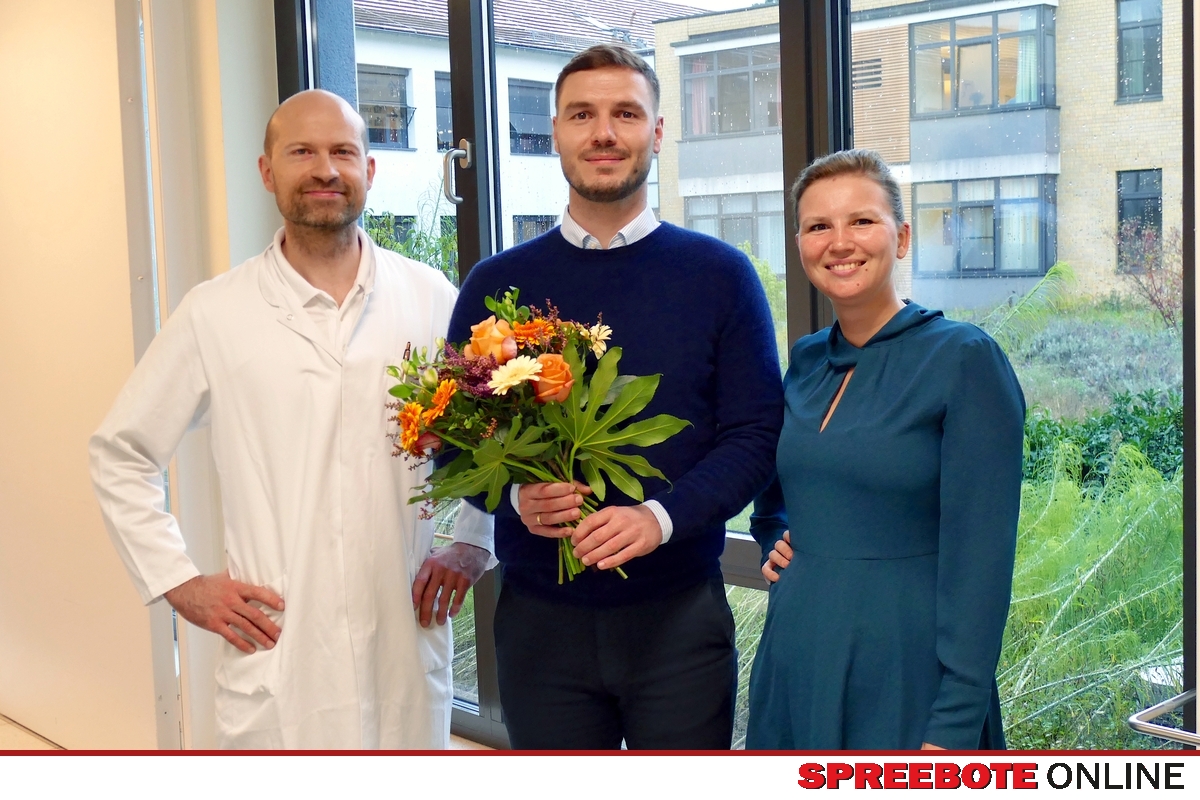 BU: Herzliche Begrüßung des neuen Klinikgeschäftsführers Frank Rohde (Mitte) – links: Prof. Dr. med. Julius Dengler, Ärztlicher Direktor und rechts Vorgängerin Carmen Bier (Foto: Anja Paar, Helios Klinikum Bad Saarow)